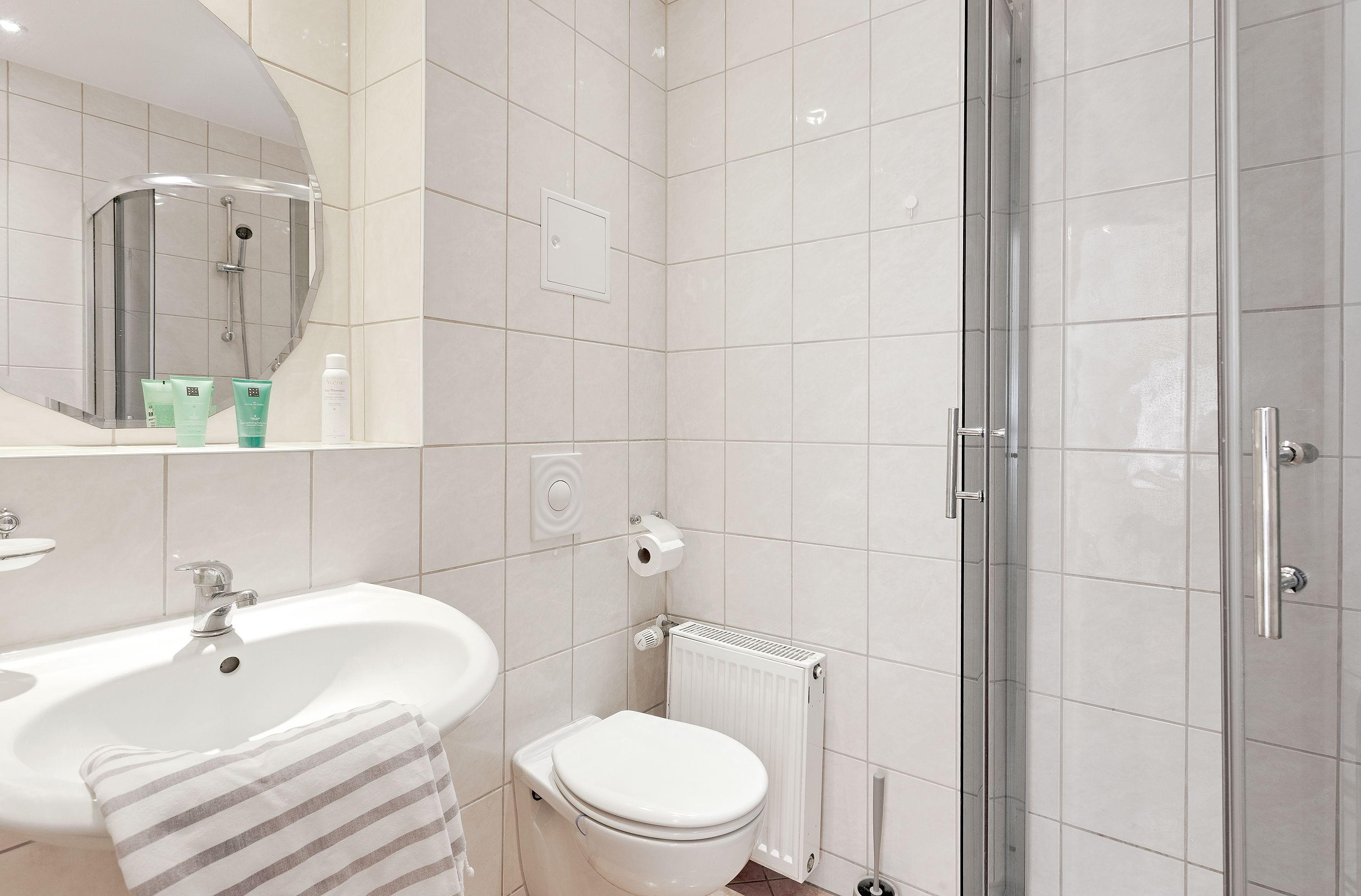 Die Wohnung ist mit Dusche/WC und einem separaten Gäste-WC ausgestattet.