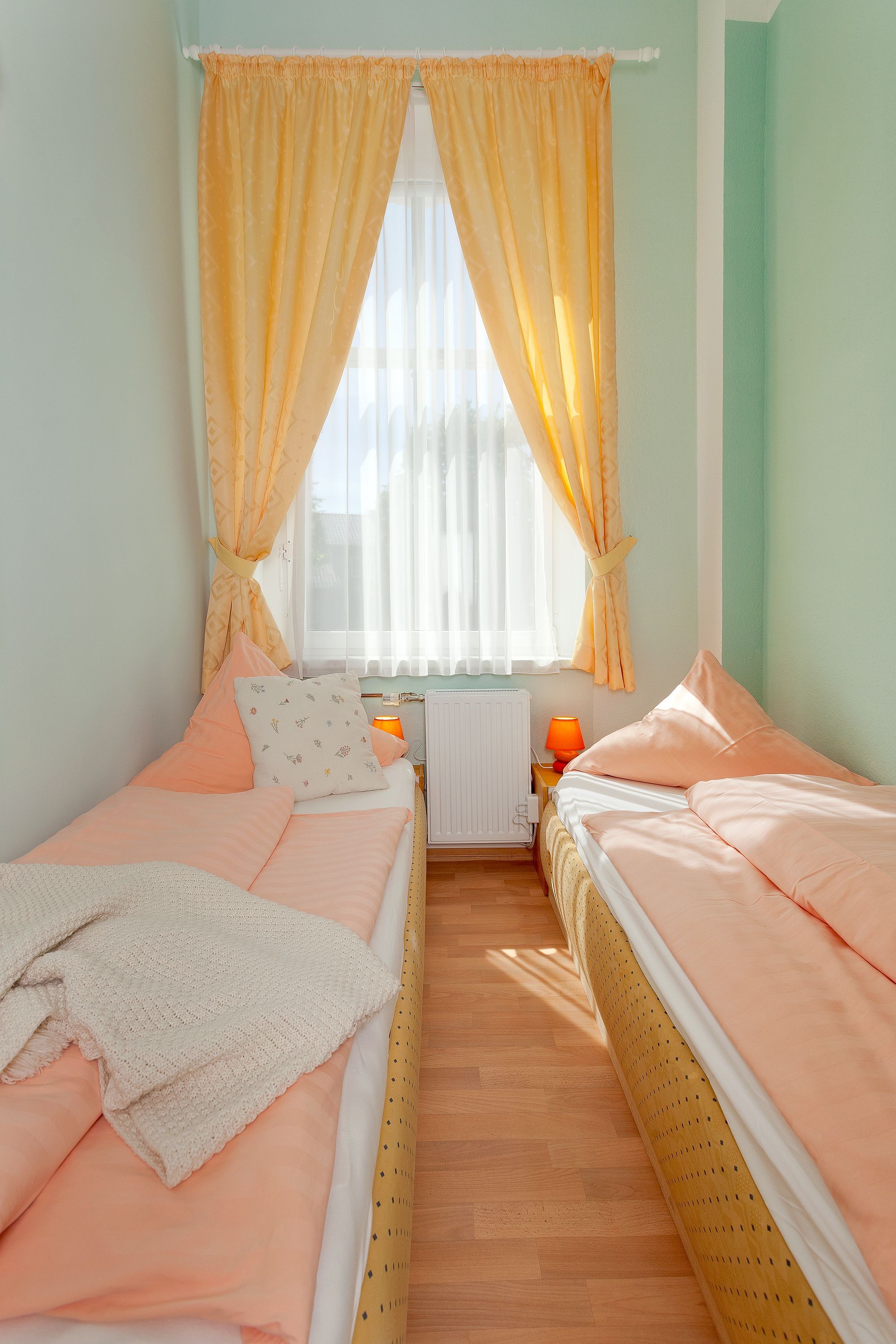 In dem anliegenden kleinen Schlafraum befinden sich zwei 80 cm x 2 m große Einzelbetten.
