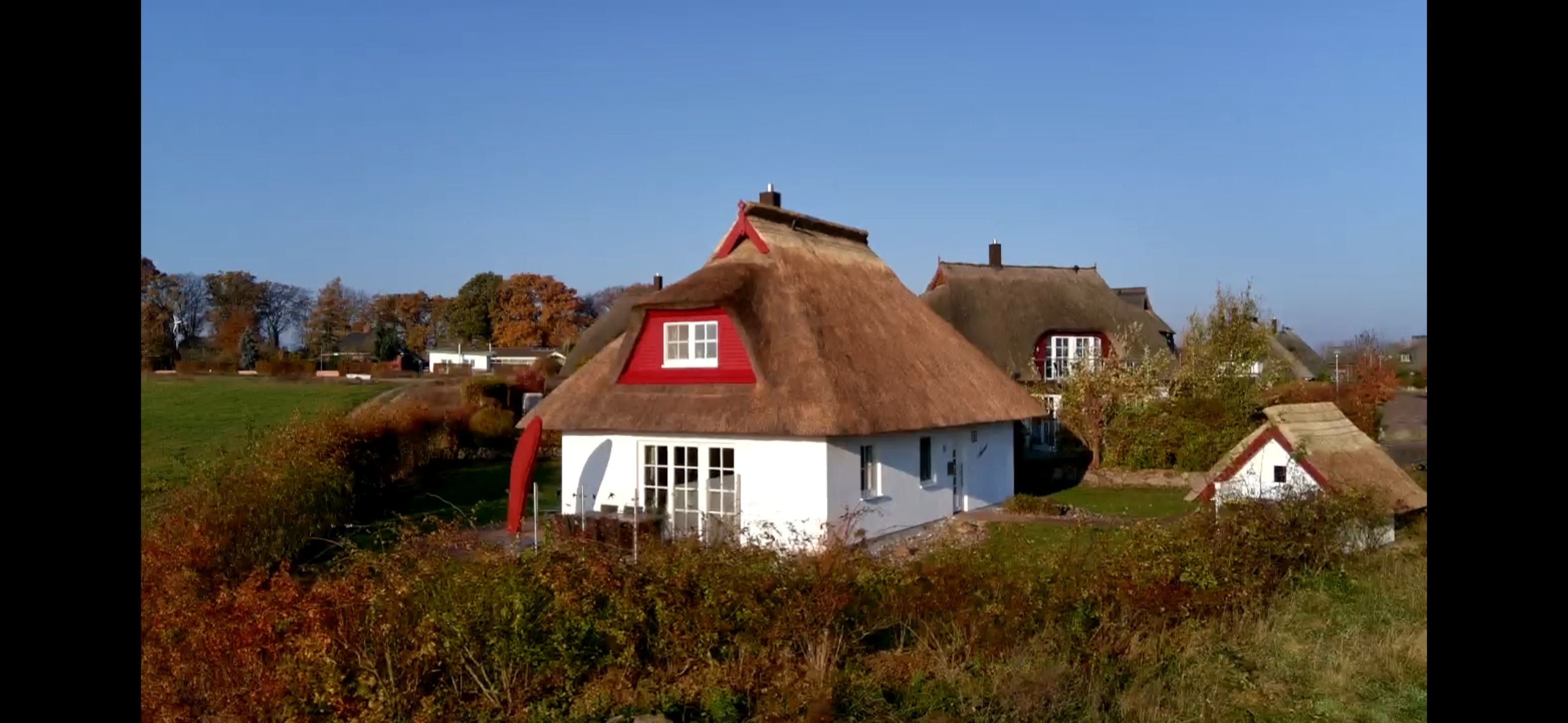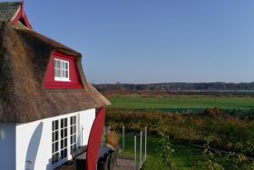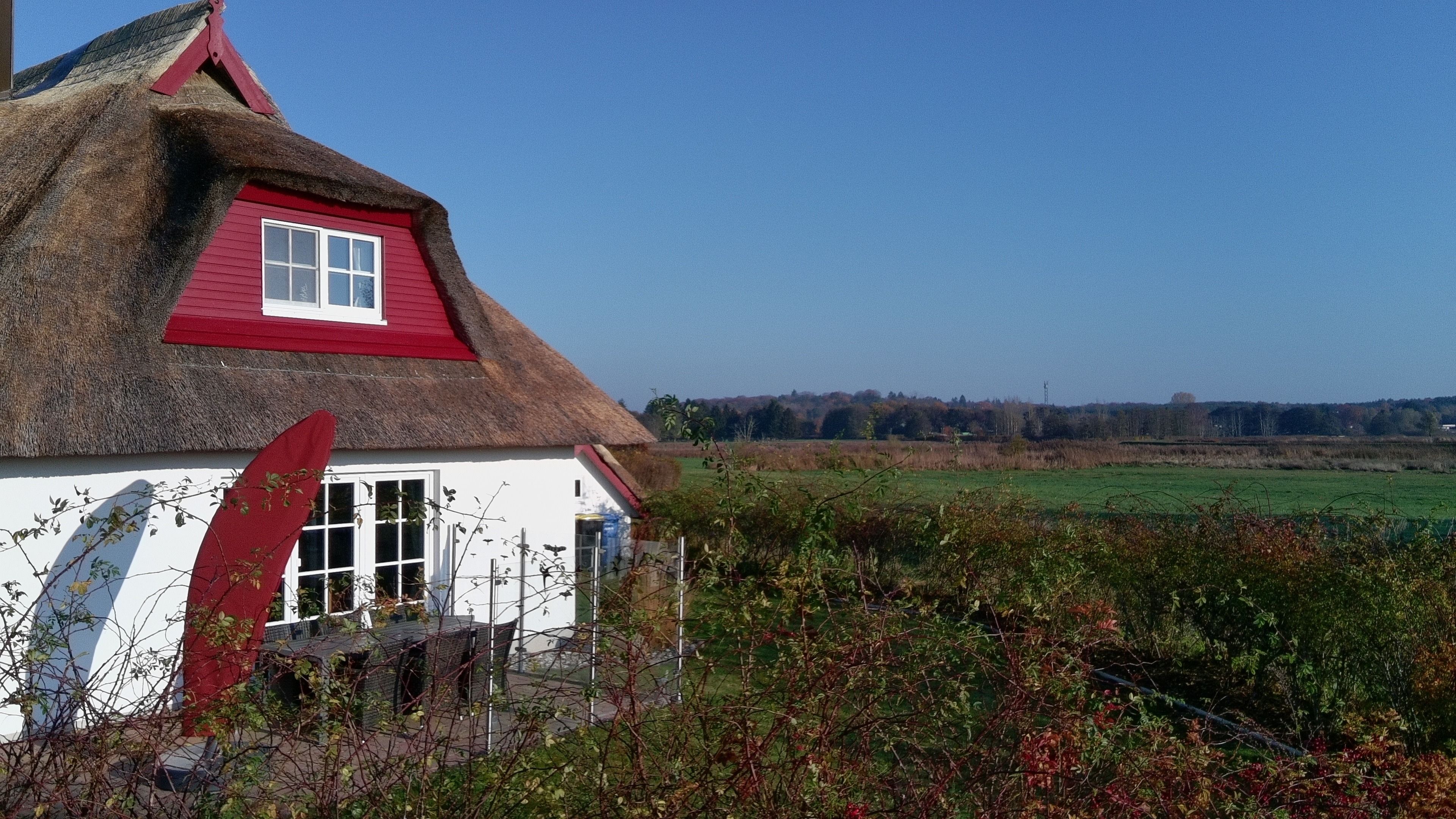 In einem kleinen Reetschuppen können Sie zum Beispiel Ihre Fahrräder unterstellen. Zwei PKW-Stellplätze am Haus sind ebenfalls kostenfrei zu nutzen. Auf der Terrasse können sie mit unserem Weber Elektrogrill schöne Abende verbringen .