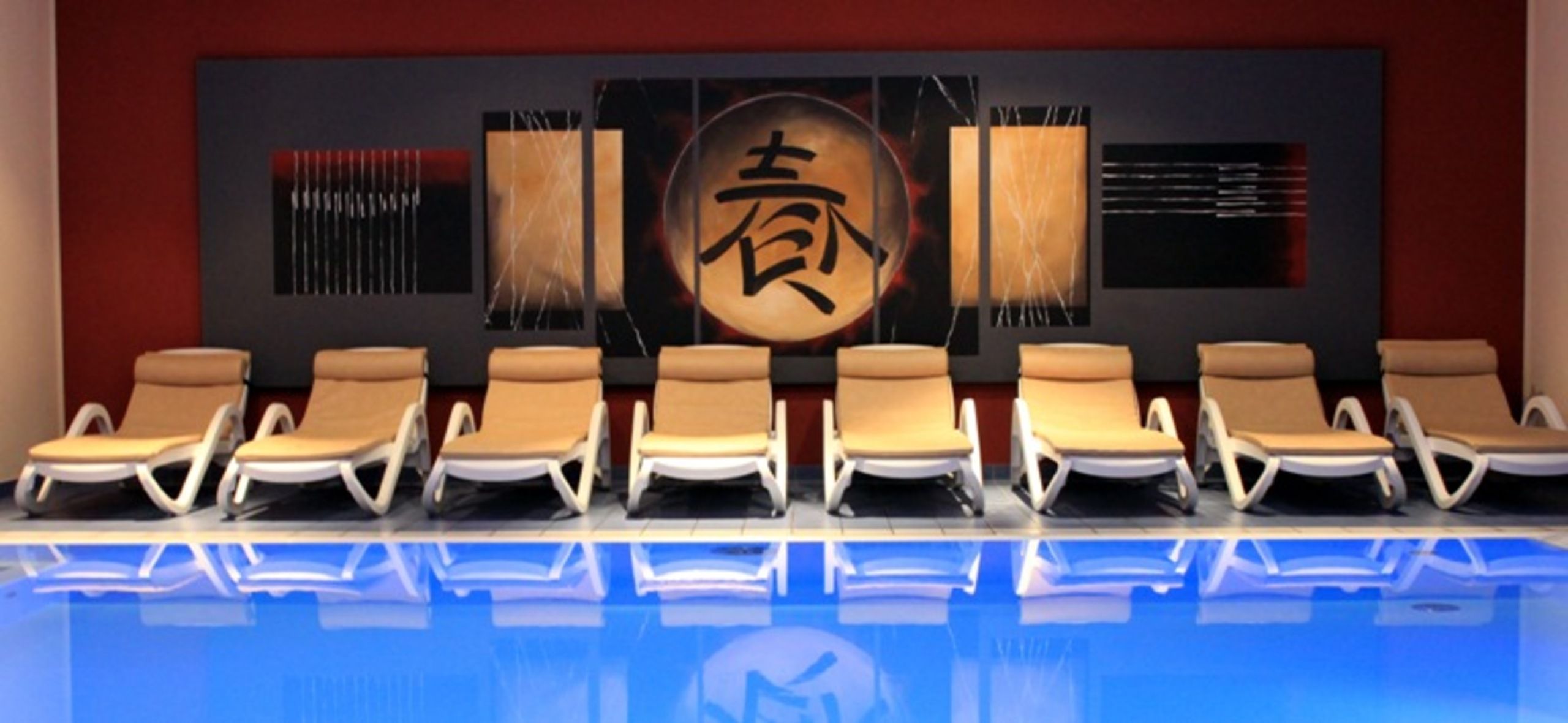 Für Entspannung sorgt unser Wellnessbereich mit großem Pool und Finnischer Sauna mit Außenliegebereich.