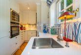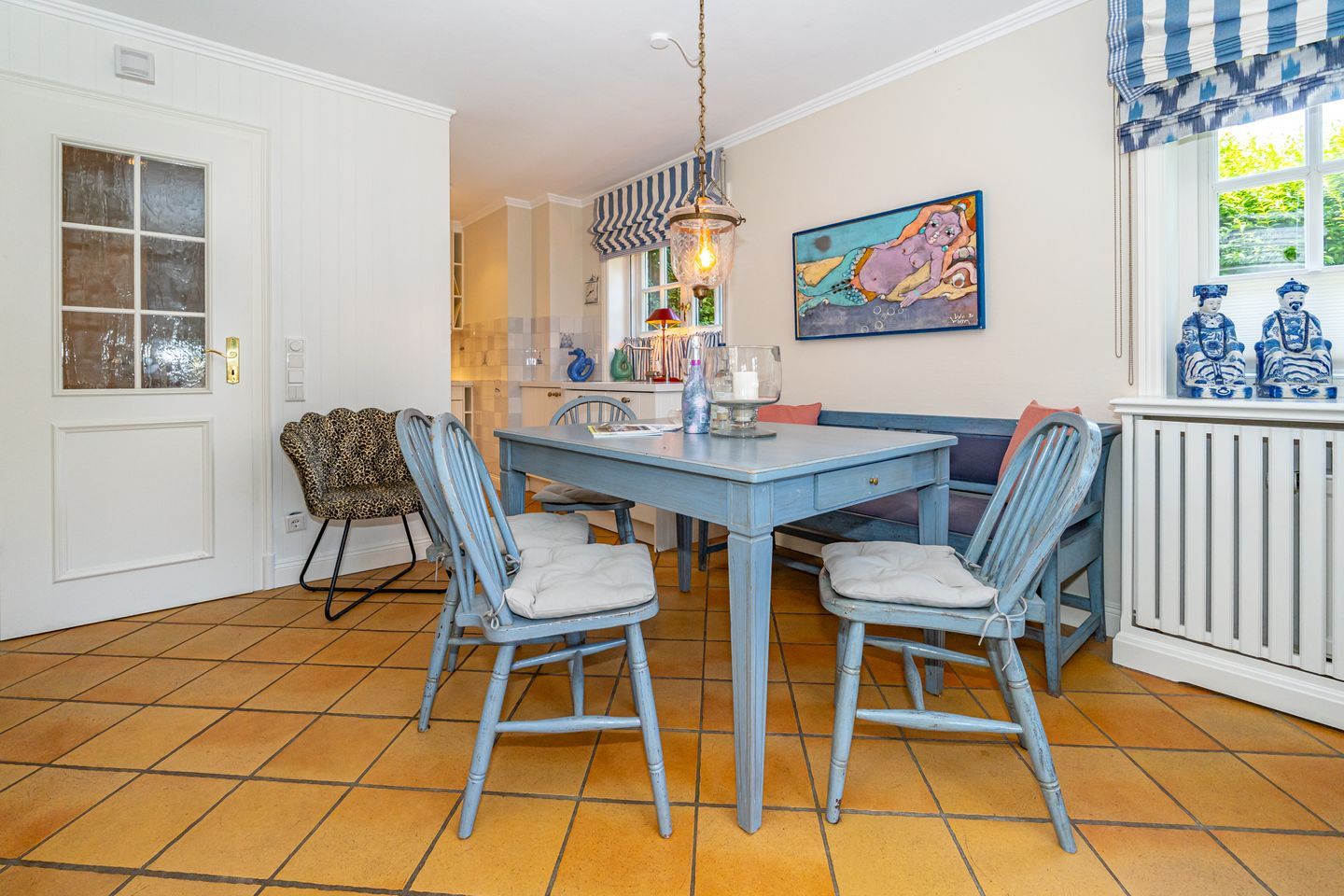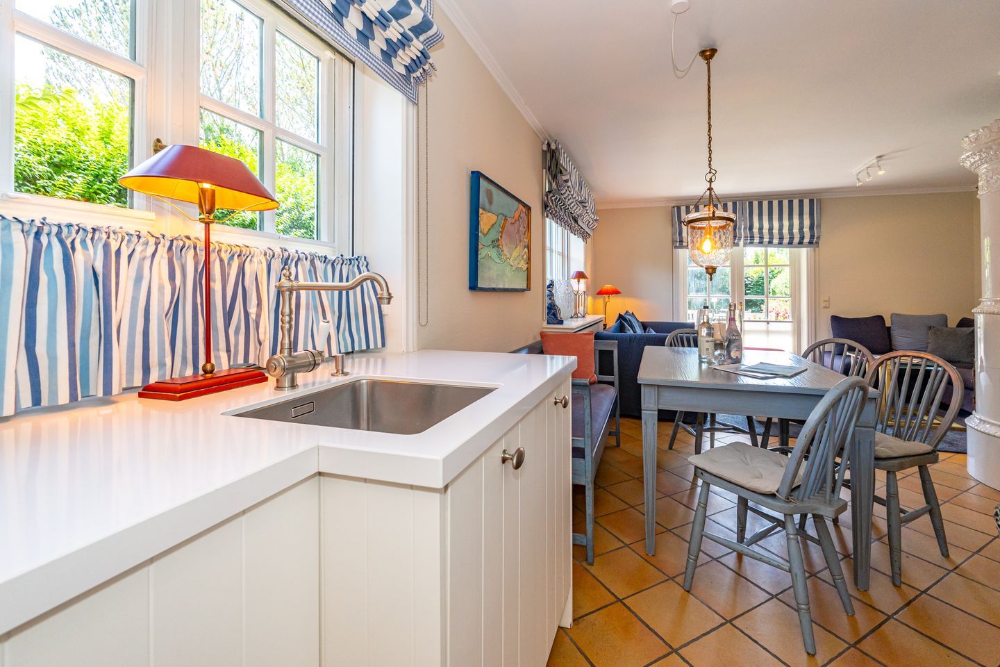 Im offenen Wohn- und Essbereich wird schnell der Mittelpunkt des Lebens spürbar. Hier erwartet Sie eine liebevoll eingerichtete Sofaecke mit einem Kaminofen, der an kalten Abenden für Gemütlichkeit sorgt. Der Essbereich mit einem großen Esstisch lädt dazu ein, gemeinsam zu speisen und Zeit zu verbringen. Die moderne Küche ist vollständig ausgestattet und lässt keine Wünsche offen. Sie finden hier einen Herd, Kühlschrank, Weinkühlschrank, Spülmaschine sowie eine Mikrowelle und eine Nespresso-Espressomaschine, um nach einem langen Tag eine Tasse Kaffee zu genießen.