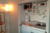 1-Zimmer Appartement mit Terrasse mit Meerblick für 1 Person mit kombiniertem Wohn-und Schlafbereich, Badezimmer mit Dusche, und einer Möglichkeit sich Frühstück und Abendbrot zuzubereiten.