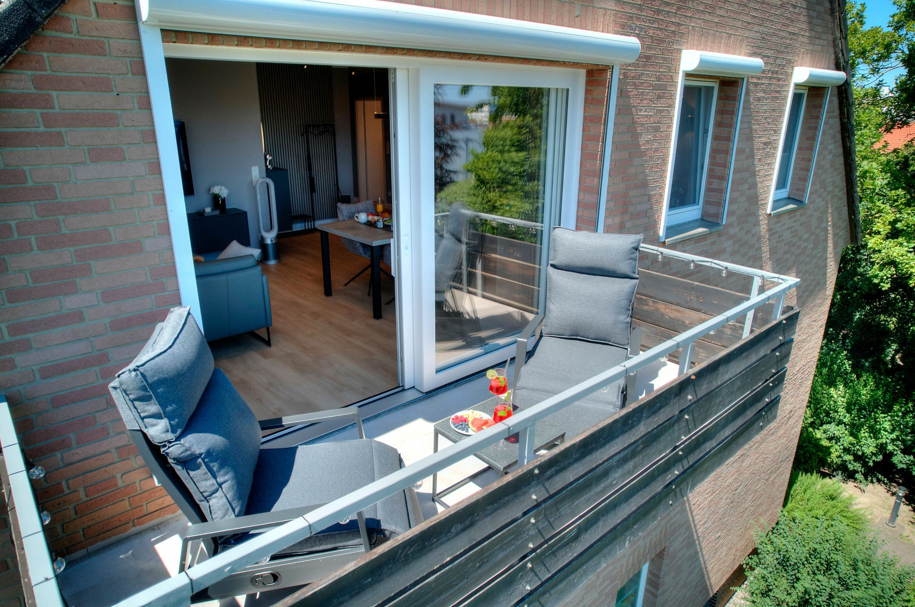 Der Balkon mit Sitzstühlen mit Liegefunktion und Ostausrichtung erlaubt unvergessliche Sonnenstunden bereits am Morgen. Elektrische Rollläden, Insektenschutz an der Balkontür oder automatisierter Beleuchtung...natürlich dabei. Dieser lädt dazu ein, den Tag mit einer Tasse Kaffee an der frischen Seeluft zu beginnen oder laue Sommerabende entspannt ausklingen zu lassen.