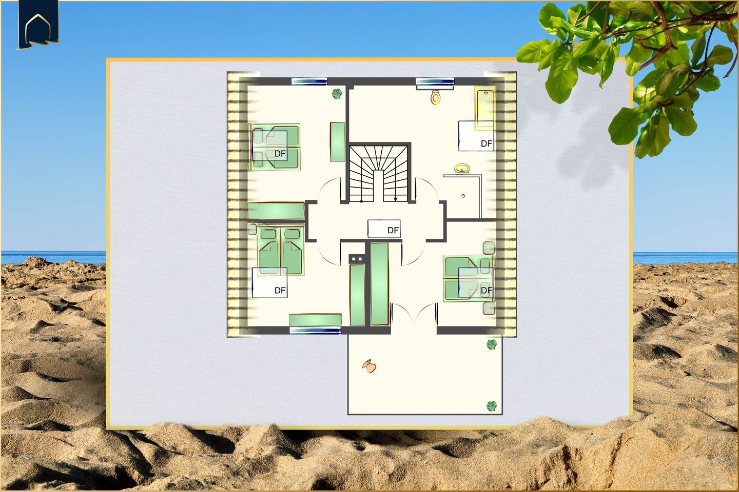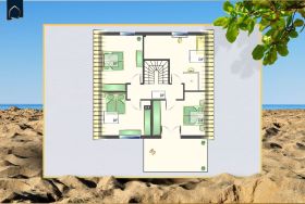 Vier geräumige Schlafzimmer – verteilt auf zwei Ebenen – schaffen zusammen mit zwei modernen Badezimmern ausreichend Privatsphäre für alle Mitreisenden. Die bodengleichen Duschen, Spiegel, Waschbecken, Haartrockner und Fenster in den Bädern sorgen für zeitgemäßen Komfort. Besonders familienfreundlich präsentiert sich das Haus mit einem Malbuch, Stiften, Spielen und Büchern für Kinder. Auch die Liegewiese im Garten bieten vielfältige Möglichkeiten zur Beschäftigung für die jüngsten Gäste.