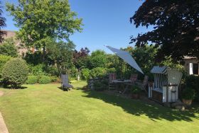 Direkt vor dem Objekt befindet sich eine eigene Terrasse mit Strandkorb.