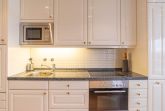 Die Küche im Landhausstil ist mit allen nötigen Haushaltsgeräten ausgestattet, damit Sie während Ihres Aufenthalts kochen und backen können. Neben einem großen Kühlschrank und Gefrierfach befindet sich eine Filterkaffeemaschine, eine Tassimo Kapselmaschine, ein Wasserkocher und ein Toaster in der Küche.