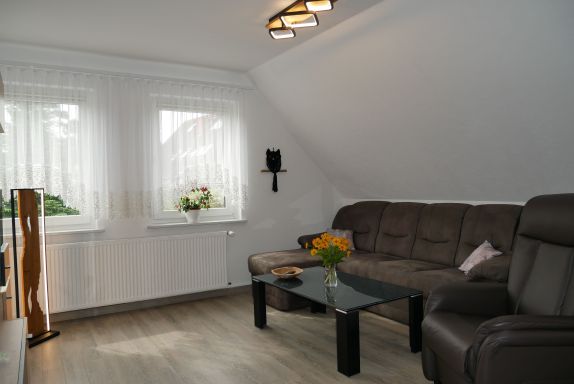 Willkommen in Ihrer gemütlichen Ferienwohnung im Dachgeschoss! Mit 51 Quadratmetern bietet sie ausreichend Platz für 2 Personen und ist ideal für einen erholsamen Urlaub. Die Nichtraucherwohnung ist komfortabel eingerichtet und verfügt über einen hellen Wohnbereich mit einer bequemen Couch, einem Relaxsessel und einem Flachbild-TV perfekt zum Entspannen nach einem Tag am Strand oder bei Erkundungen auf Usedom.