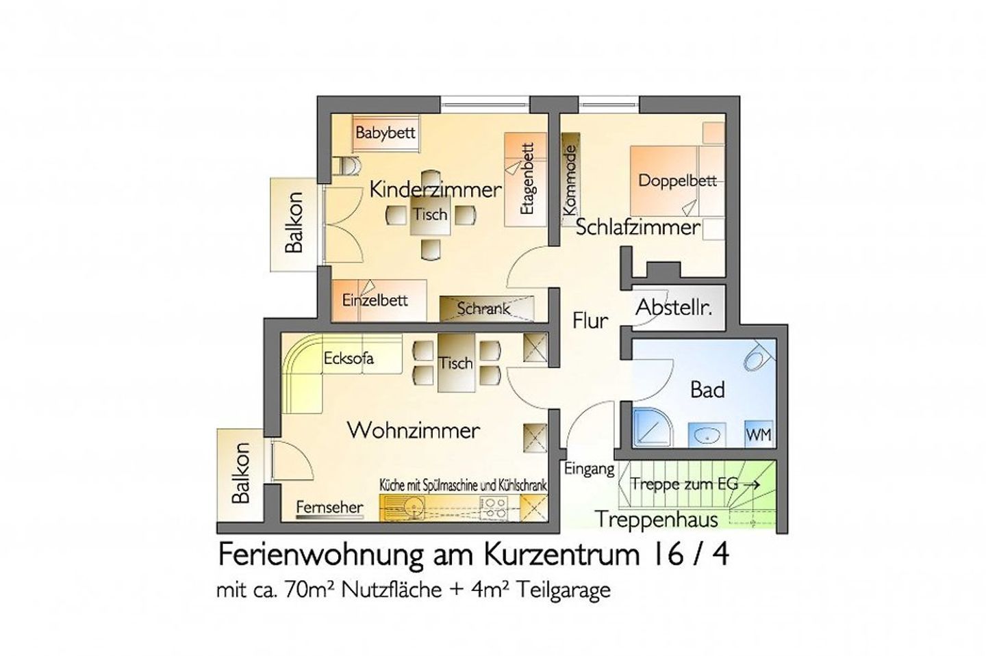 Ausstattung: Ledergarnitur, Sat-TV, DVD, Mikrowelle, Stereoanlage, Geschirrspüler, Waschmaschine, Bücher, Spiele, 2 Balkone. Ein Garten lädt zum Faulenzen und Grillen ein. Zur Wohnung gehören ein PKW Stellplatz und eine Teilgarage für Fahrräder. Gartenmöbel stehen ebenfalls zur Verfügung. Alle Fenster sind mit elektrischen Rollläden ausgestattet.