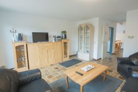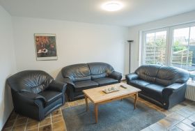 In hinterer Reihe - ruhig gelegen - und doch strandnah in der Edo-Wiemken-Straße 56C betreten Sie unser komfortable Ferienhaus Gerth. Vom Eingangsbereich mit Garderobe und Gäste-WC gelangen Sie rechts in den geräumigen Wohn-/Essbereich mit Ausgang zur möblierten Terrasse. Die Küche mit kompletter Ausstattung und großem Essplatz finden Sie ab Diele liegt separat.