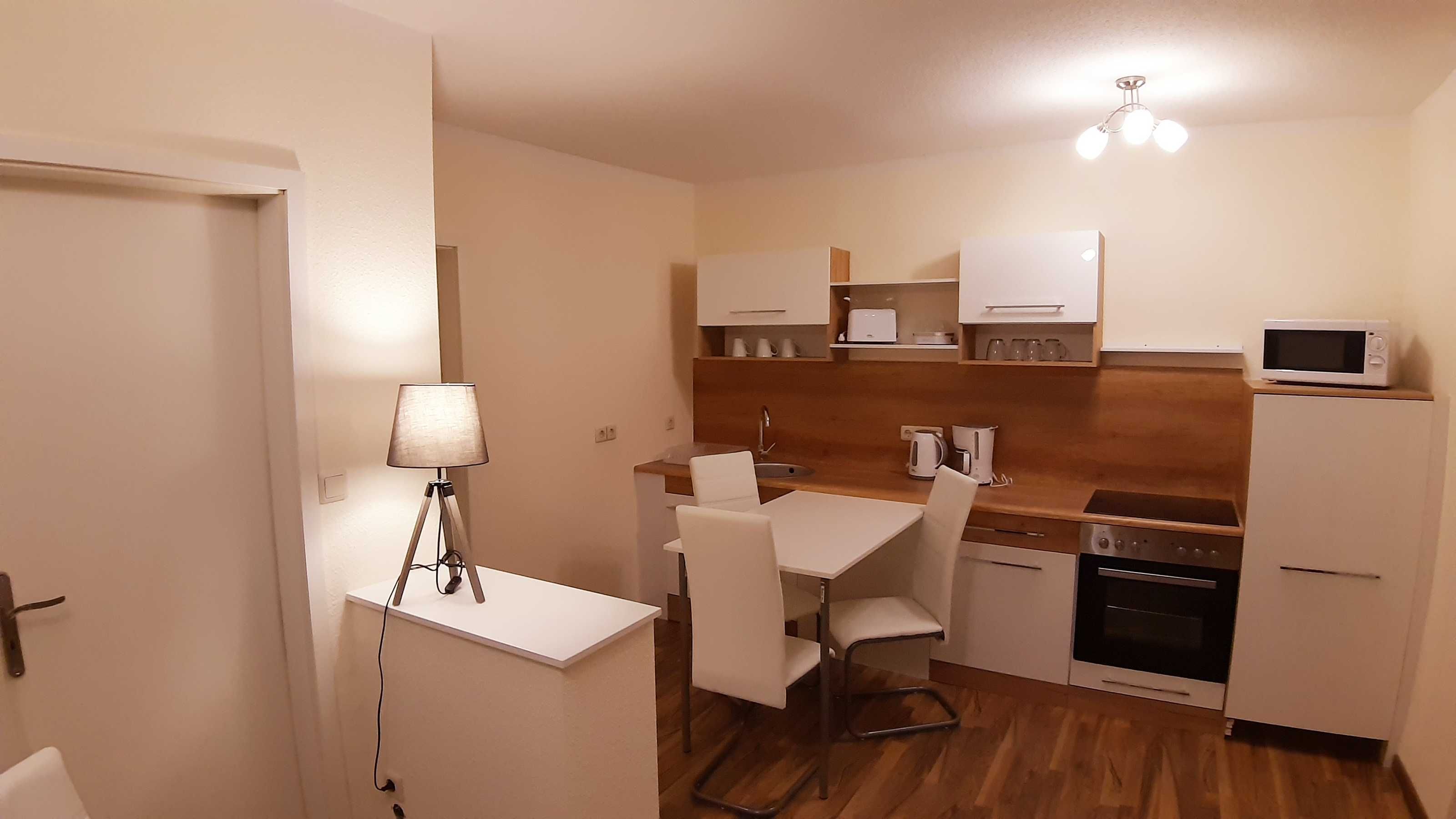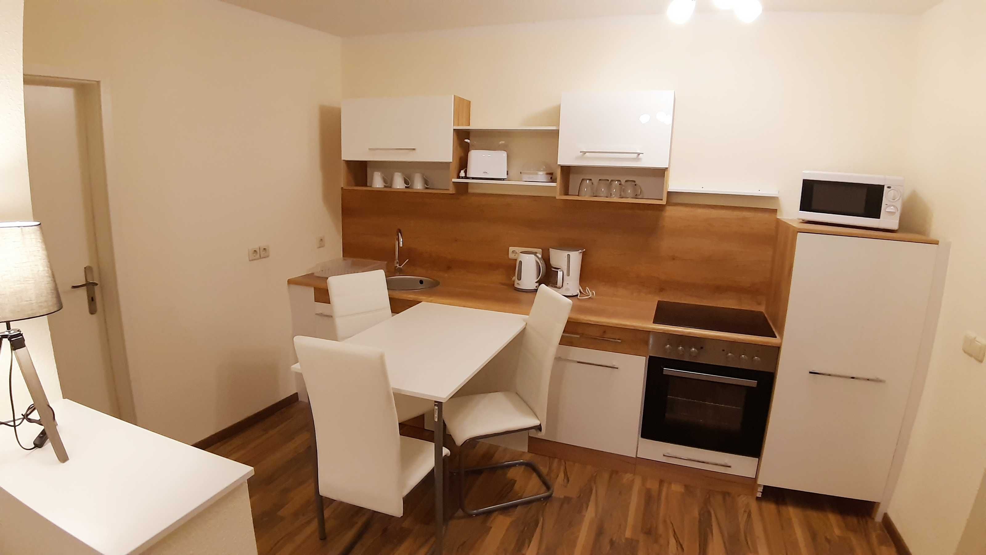 28 qm Ferienwohnung mit eingezäunten Garten (der Garten wird von 2 Ferienwohnungen genutzt). Die Wohnung hat ein Schlafzimmer mit Doppelbett. Einen Wohnbereich mit Schlafcouch. Küche mit Essbereich. Die Küche ist ausgestattet mit Backofen, Ceranfeld, Toaster, Wasserkocher, Kaffeemaschine und Kühlschrank. Ein Badezimmer mit Dusche. Im Wohnbereich gibt es eine Flachbild-TV.