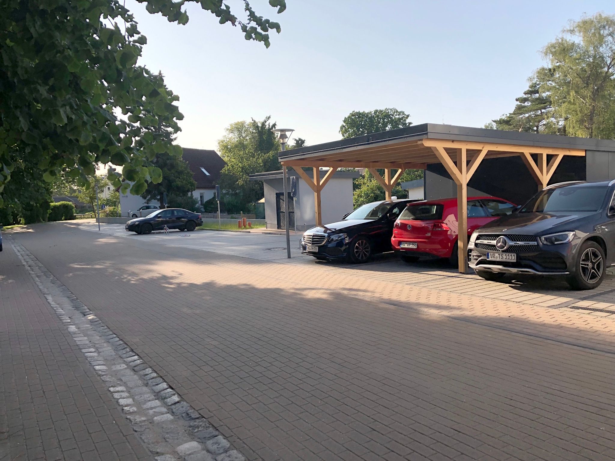 Ein zugehöriger kostenloser PKW- Stellplatz befindet sich direkt neben dem Gebäude. Dieser Stellplatz ist mit dem Namen des Appartements markiert. Er ist leicht zu finden, weil dort auch eine elektrische Ladesäule steht.