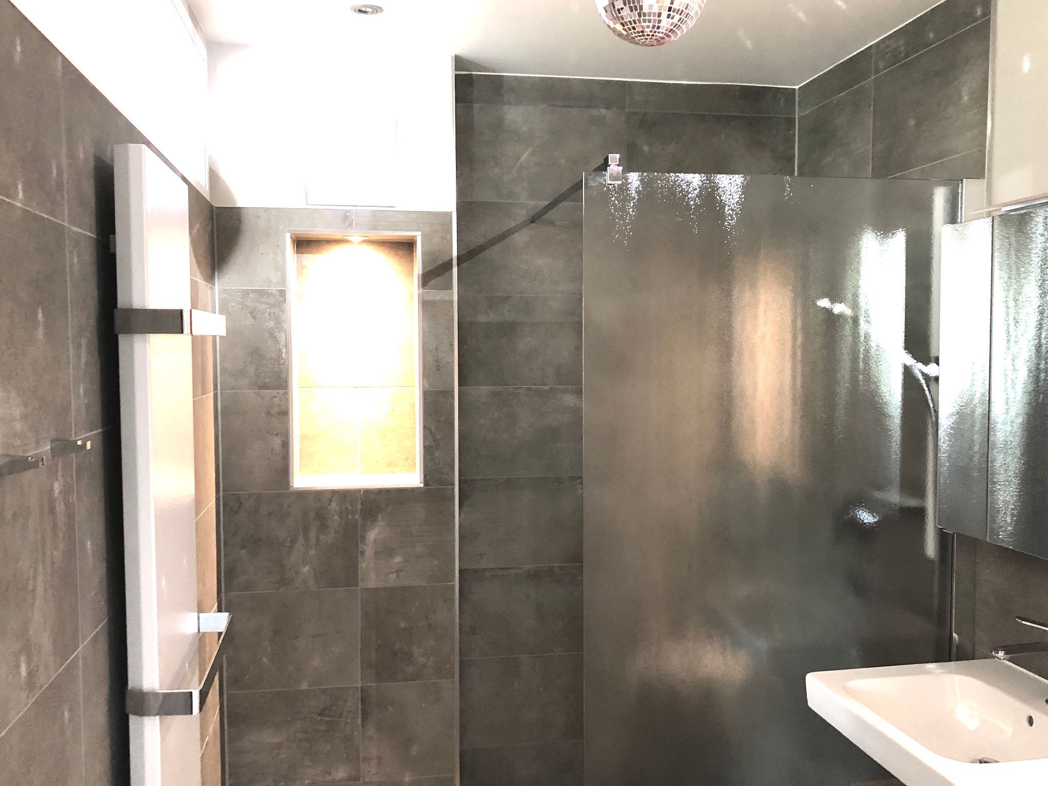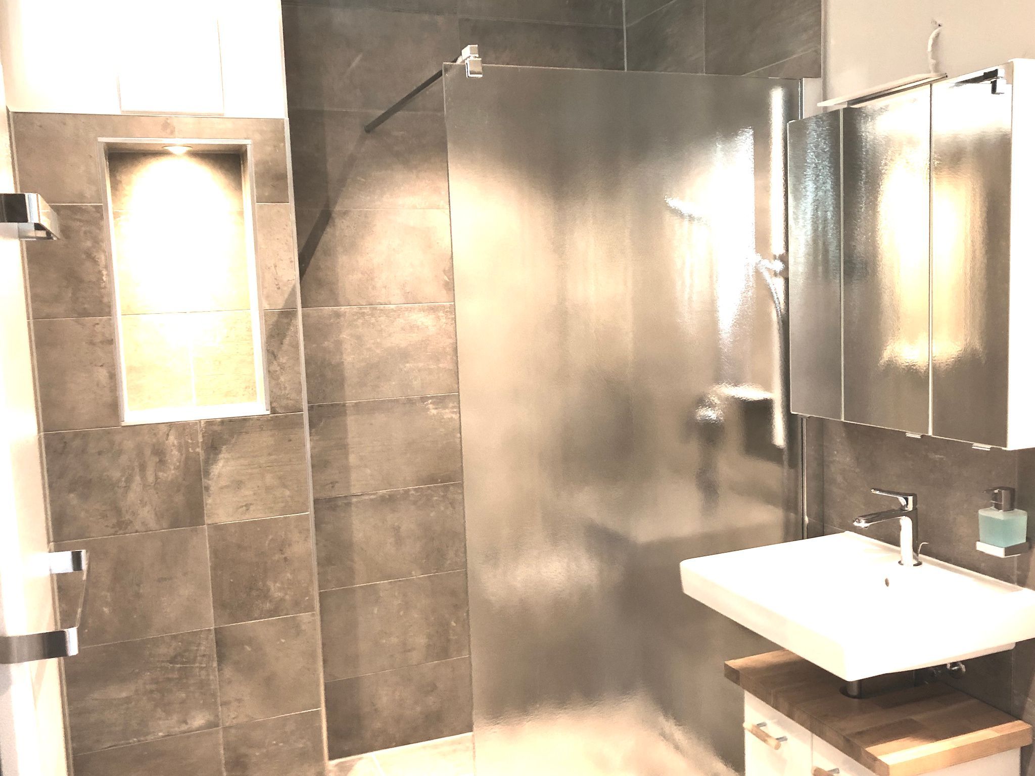 mit ebenerdiger Dusche und WC, Fön