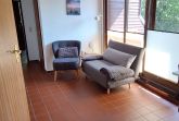 Loggia mit Sitzmöglichkeit und Sonnenschirm