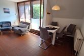 Wohnzimmer mit Essbereich, Fernseher, (Schlaf-)Couch und Sessel, WLAN