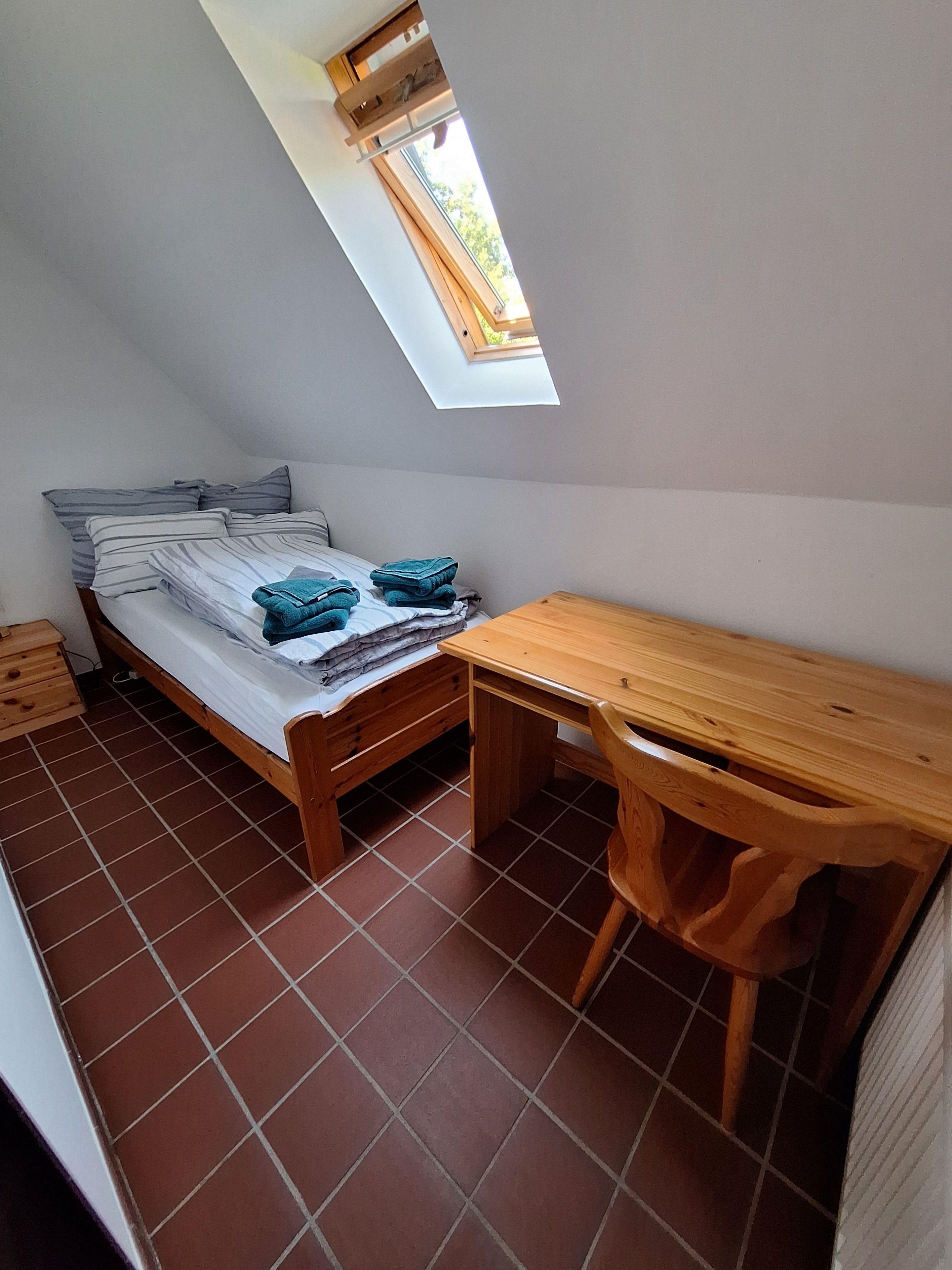 2. Schlafzimmer: Einzelbett und Schreibtisch