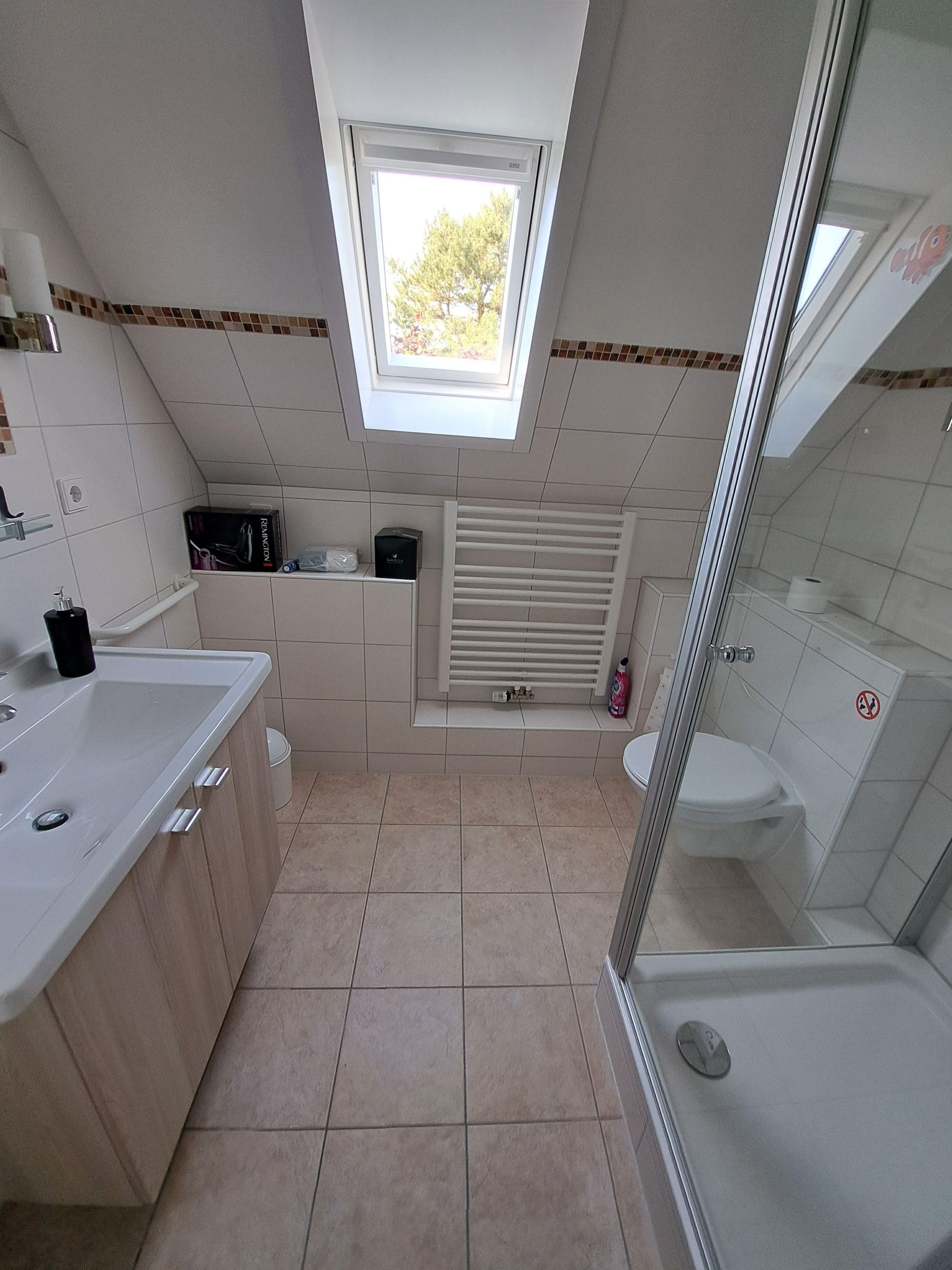 Es gibt eine Münz-Waschmaschine und einen Münz-Trockner im Keller des Hauses