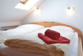 Die Wohnung verfügt über ein Wohnzimmer mit Essbereich, ein Elternschlafbereich, ein Kinderschlafzimmer, eine Küchenzeile inkl. Spülmaschine sowie ein Duschbad mit WC. Die Sofaecke befindet sich im Erker und lädt zu gemütlichen Leseabenden ein. Der Elternschlafbereich geht direkt vom Wohnzimmer ab und Sie schlafen wie in einem Fuchsbau direkt unter dem Sternenhimmel.