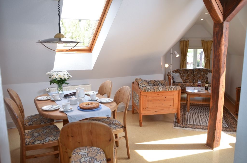 FuchslöcherUnsere Ferienwohnung Fuchslöcher befindet sich im Dachgeschoss unserer schönen Altbauvilla Mumm und bietet auf 45m2 Platz für bis zu 5 Personen. Die Villa stammt aus dem Jahre 1907 und wurde Mitte der 1990er Jahre vollständig saniert. Heute steht die Villa für modernes Wohnen unter Erhalt liebevoller Details des Altbaus wie Kassettentüren und gemütlicher Dachbalken.
