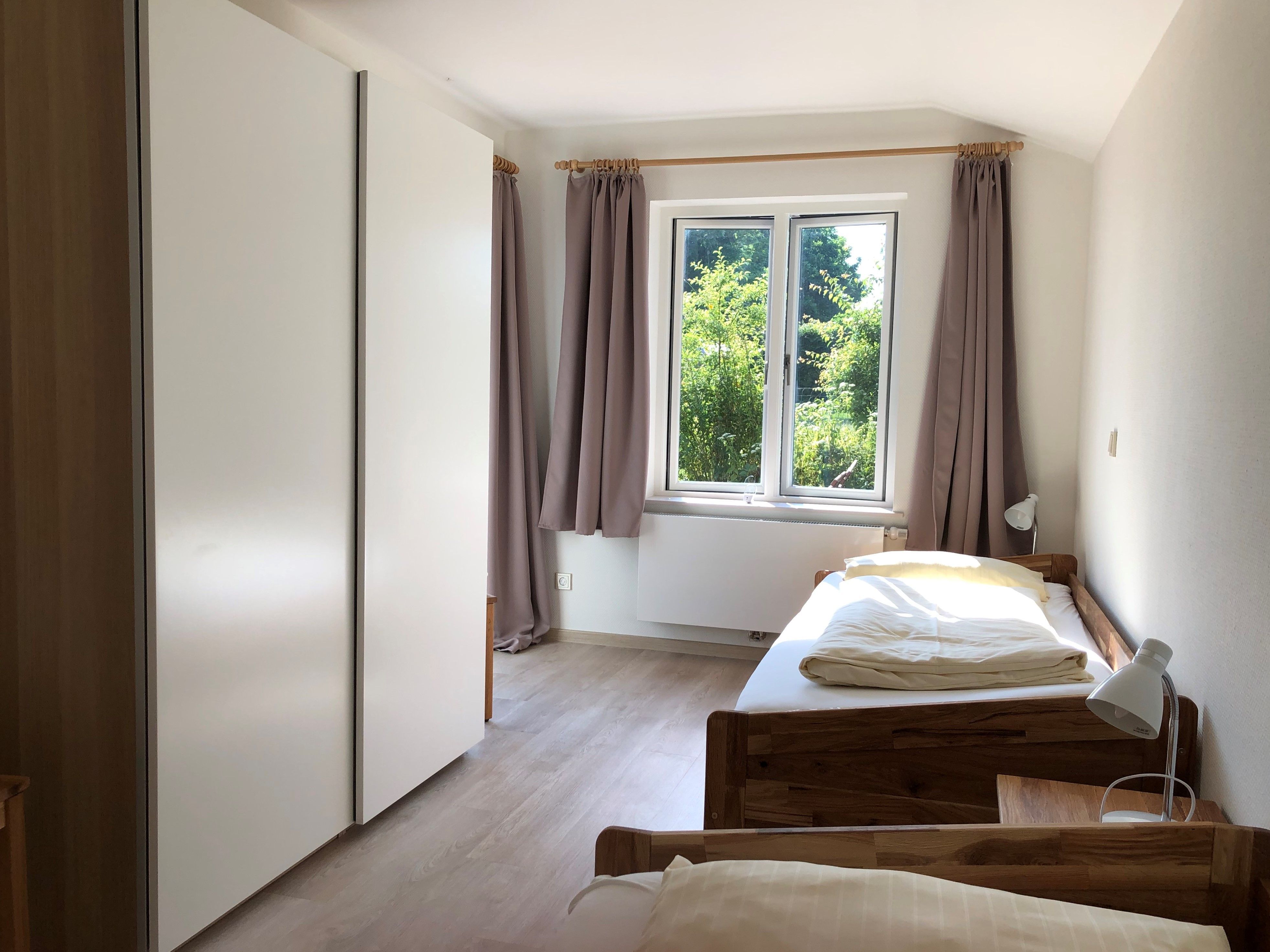 Vom Wohnzimmer und Kinderzimmer haben Sie direkten Zugang zur Terrasse mit angrenzendem Gartenbereich, von dem Sie direkten Blick auf unsere hofeigene Hauskoppel mit unseren Schafen, Ziegen und Ponys haben. Das Elternschlafzimmer ist zum vorderen Hofgelände gelegen.