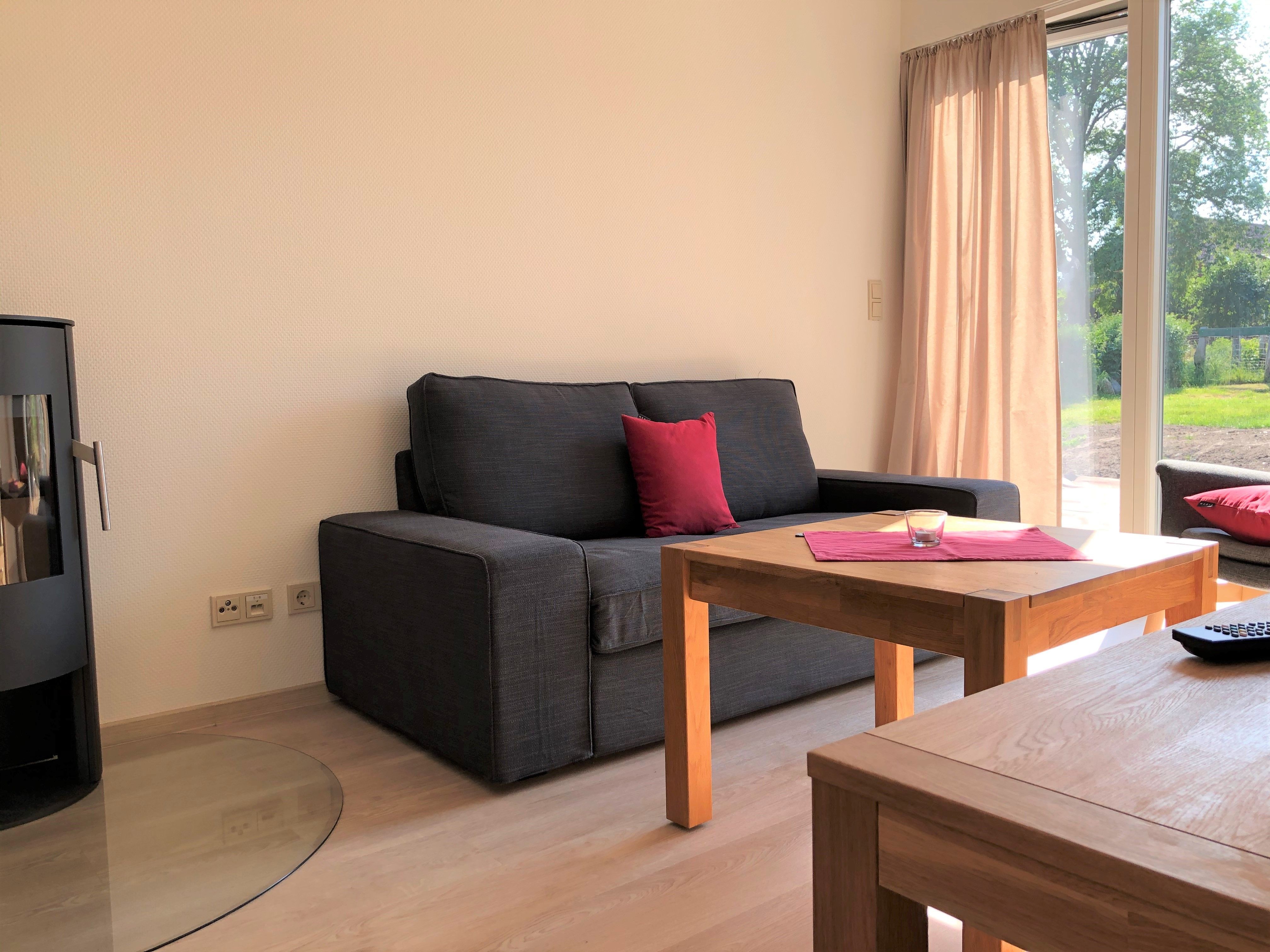 Der Bungalow verfügt über zwei separate Schlafzimmer, offen gestaltetem Wohn-/Essbereich mit Kamin, modernem Duschbad und einer vollständig ausgestatteten Küche, die keine Wünsche offen lässt.