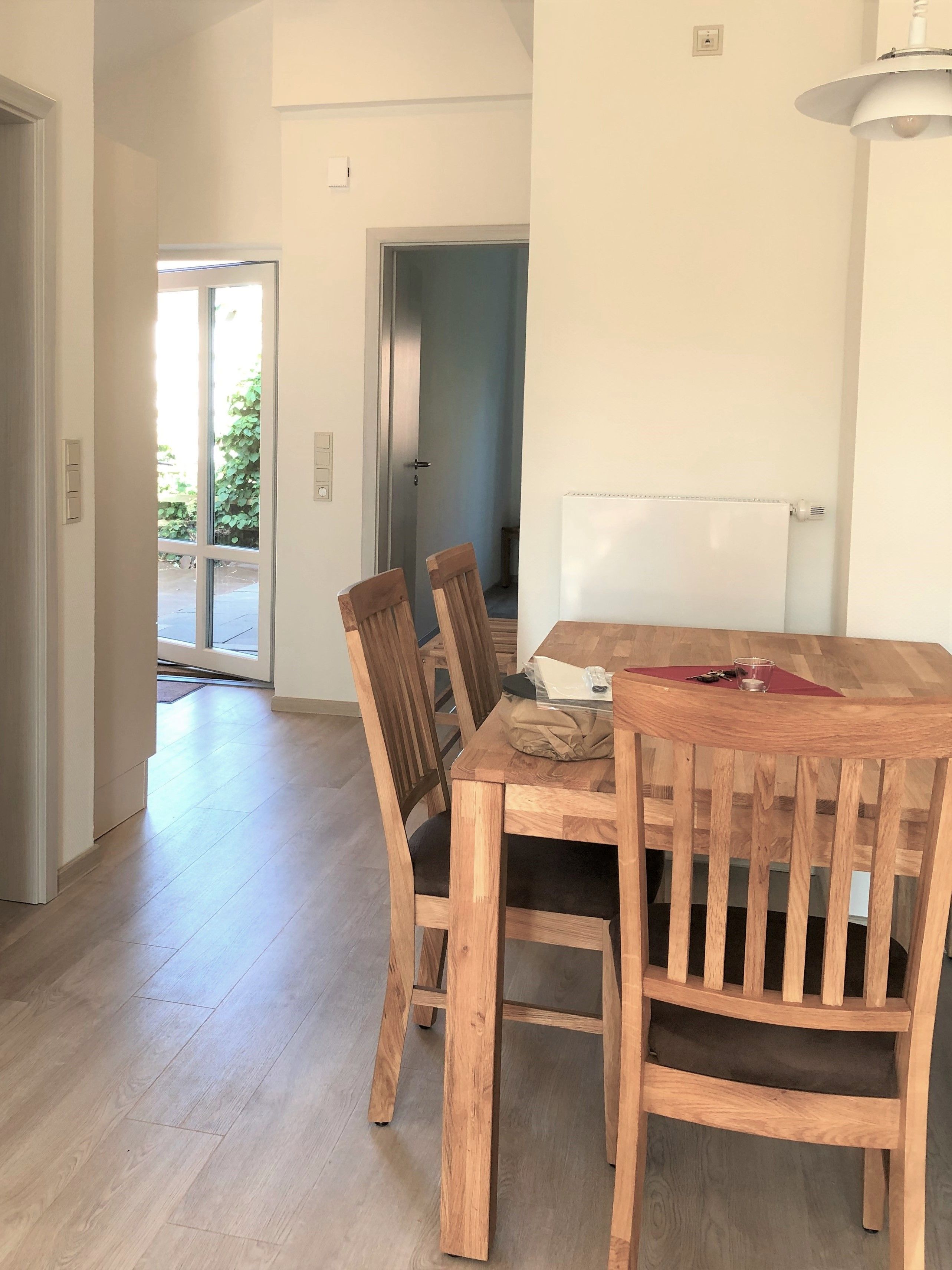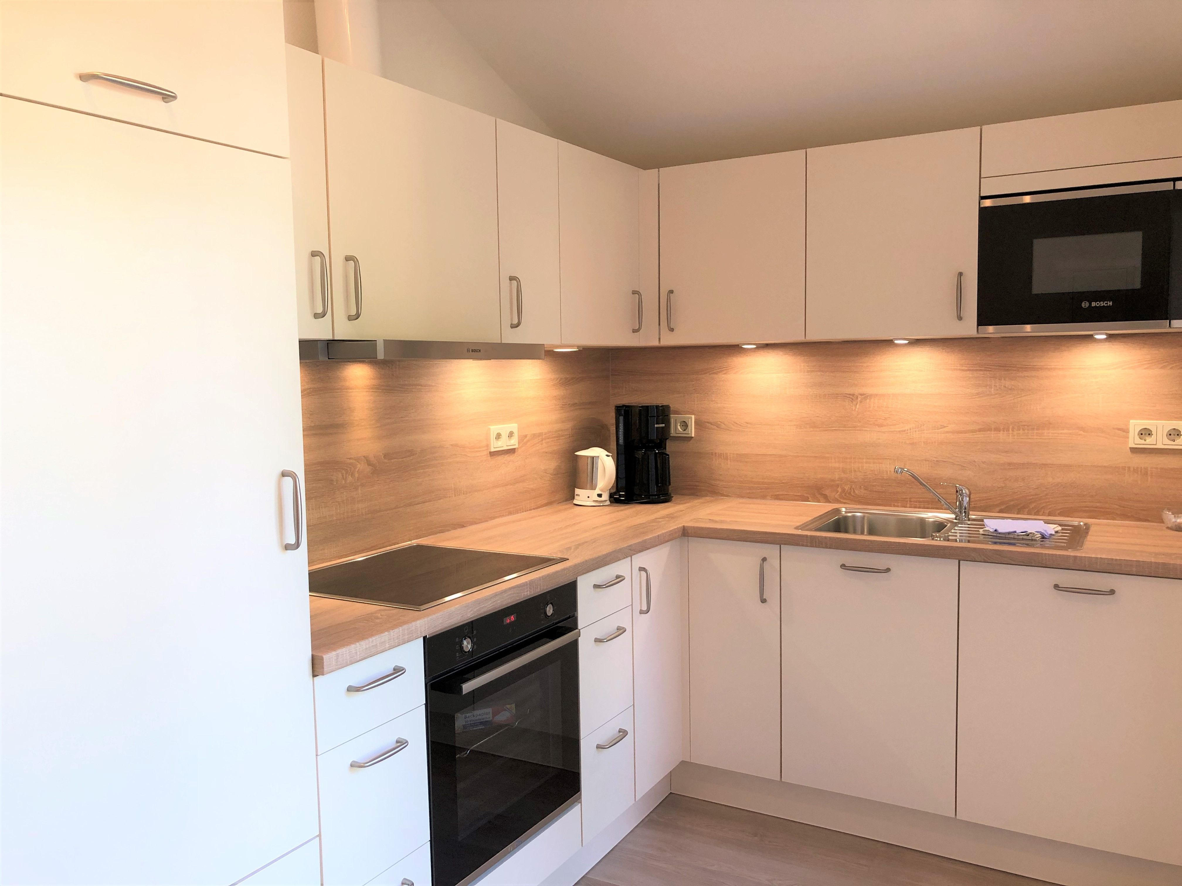 AusstattungDie Küche ist vollständig ausgestattet mit Spülmaschine, Mikrowelle, Induktionsherd mit Backofen, Kaffeemaschine, Wasserkocher, Toaster, Mixer, Waffeleisen, Geschirr, Besteck, Töpfe, Pfannen und weiteren wichtigen Küchenhelfern. Geschirrhandtücher, Schwämme, Müllbeutel etc. stellen wir Ihnen ausreichend zur Verfügung. Eine Anfangsausstattung an Geschirrspültabs, Küchenrolle und Toilettenpapier steht ebenfalls für die ersten Tage Ihres Aufenthaltes bereit.