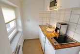 Die Küchennische verfügt über ein 2-Platten-Ceranfeld,  Kühlschrank mit Gefrierfach, Mikrowelle, Kaffeemaschine, Toaster, Wasserkocher sowie ausreichend Geschirr und Kochutensilien.