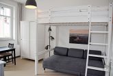 Diese hell und freundlich gestalteten 1-Raum-Ferienwohnungen sind ca. 30 qm groß und haben eine Deckenhöhe bis zu 3,10 Meter und wurden modern und komfortabel ausgestattet.