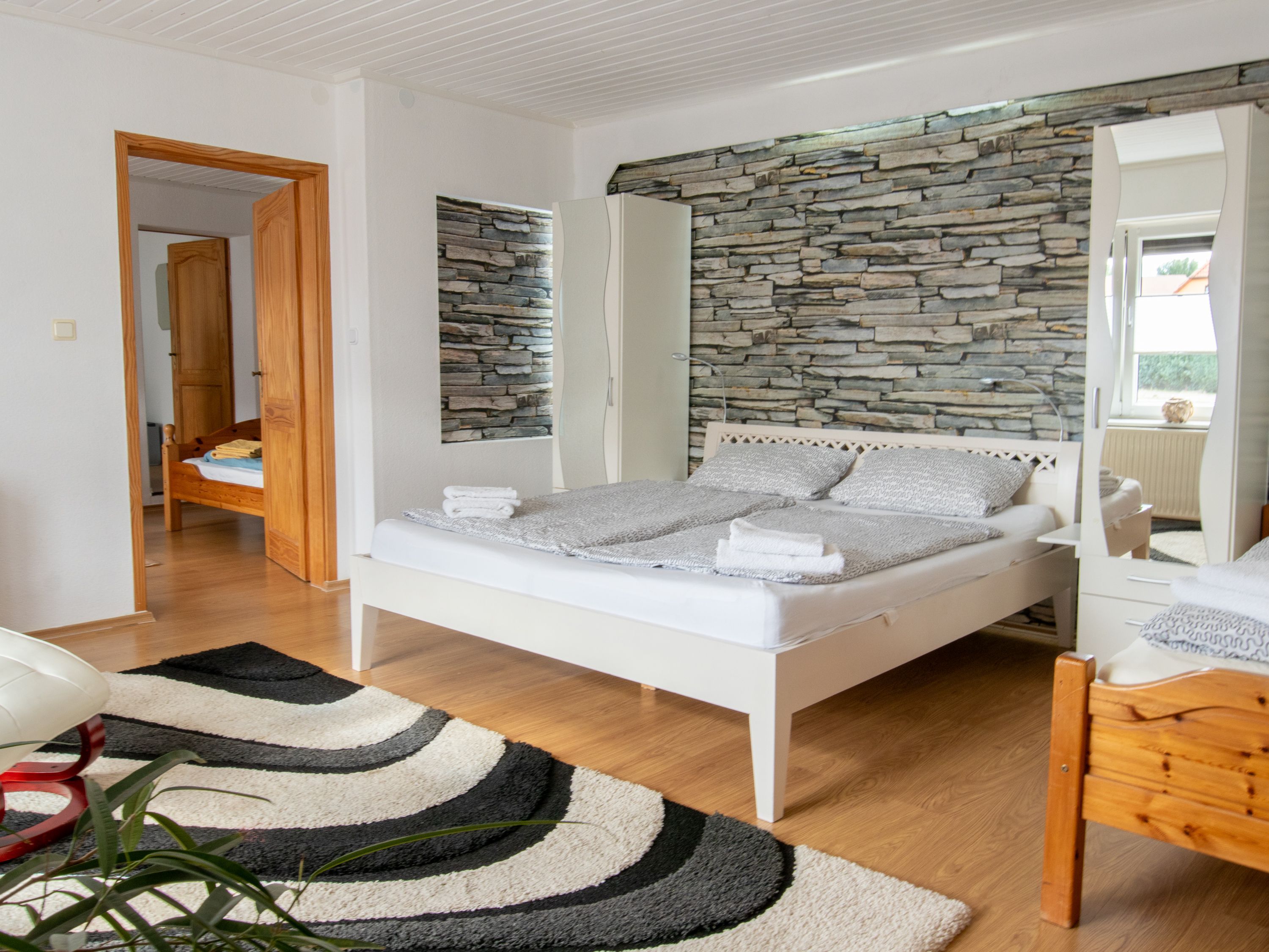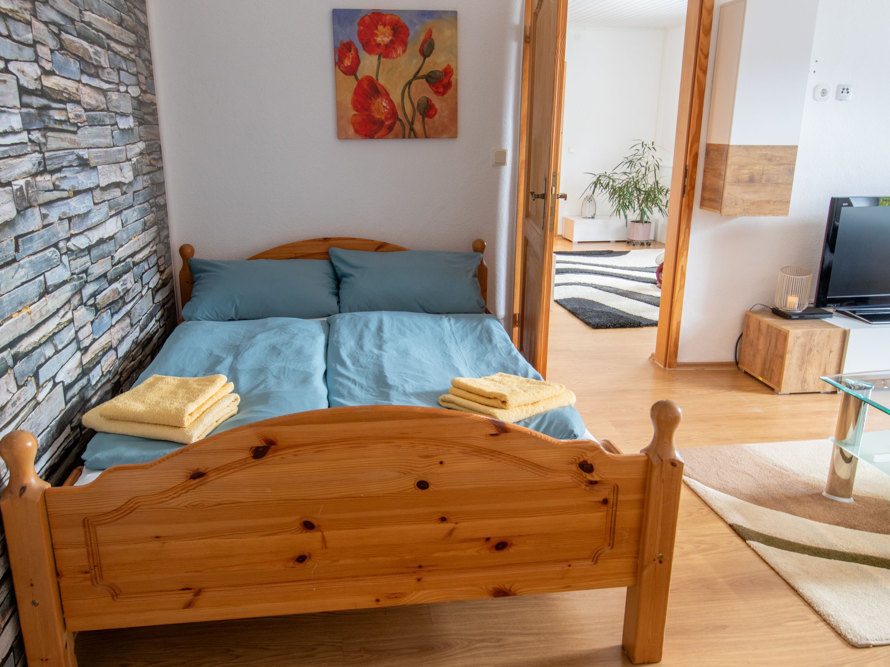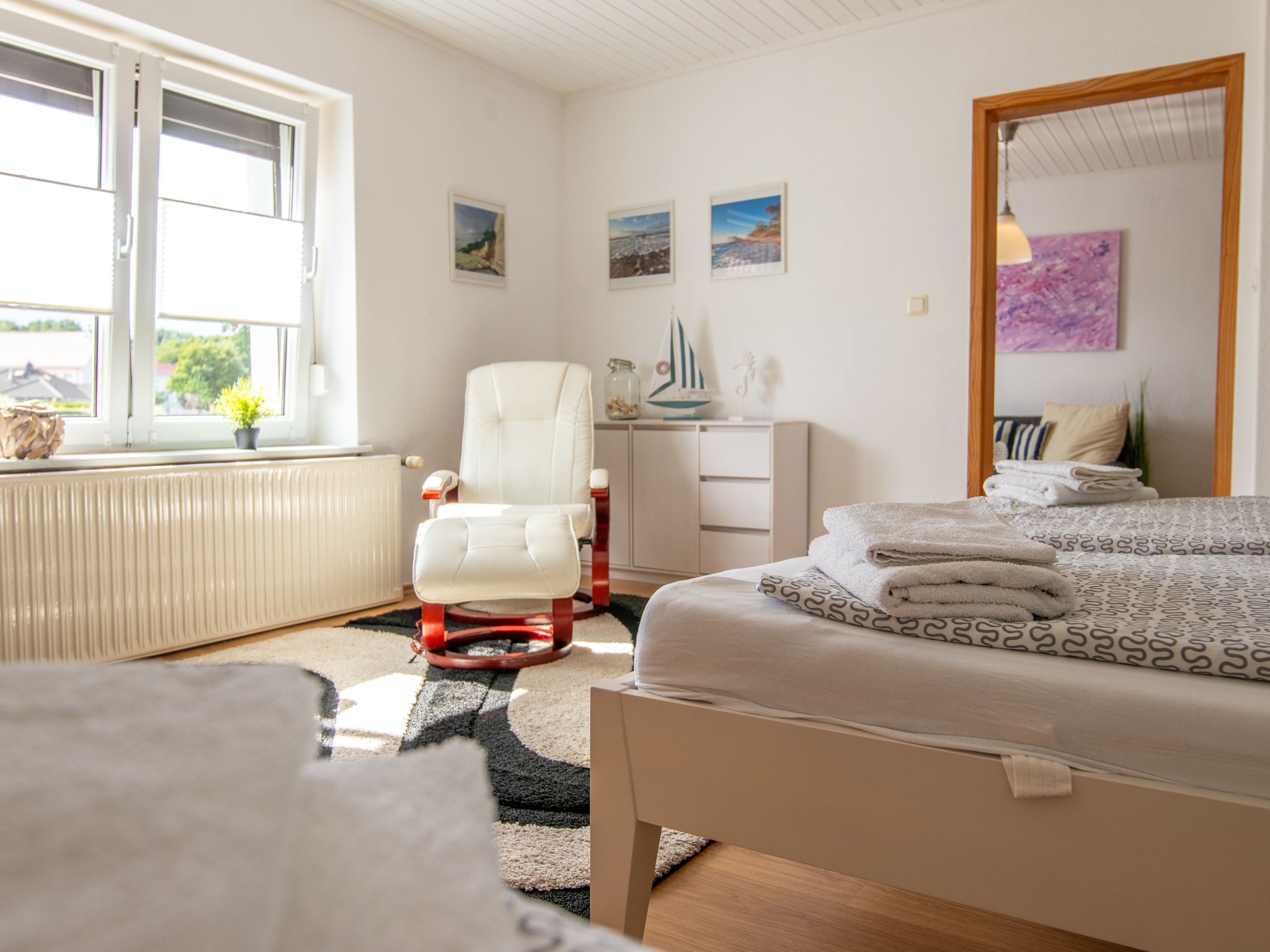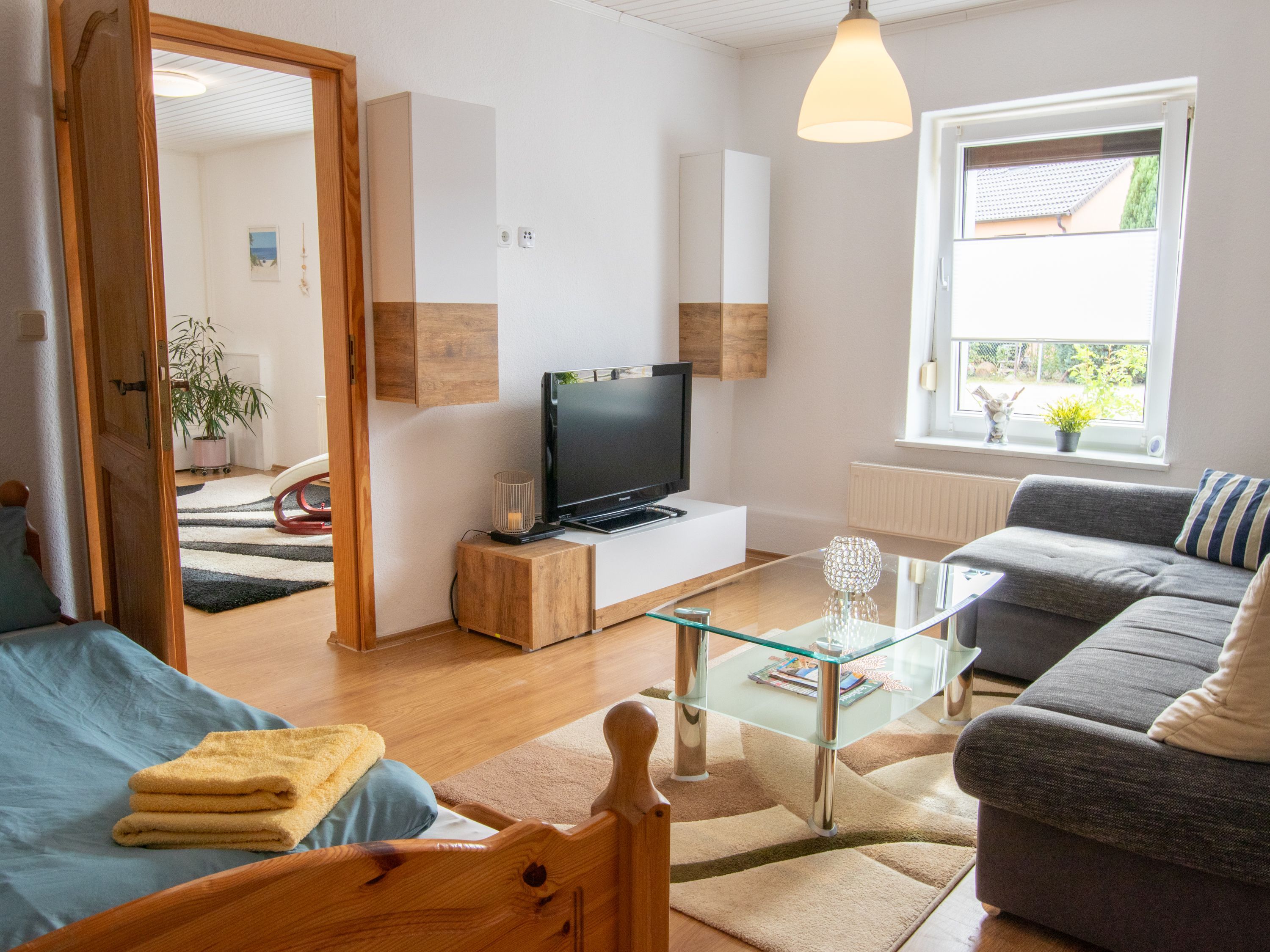 Die 60m² Ferienwohnung für 4 Personen hat ein Wohnzimmer, welches mit einem französischen Bett (140x200), Couchtisch, Anbauwand mit Flachbildfernseher ausgestattet ist. Im Schlafzimmer befindet sich ein Doppelbett (180x200, getrennte Matratzen), Sideboard und zwei Einzelbetten (90x200). Die Küche ist komplett ausgestattet mit Backofen, Kühlschrank mit Gefrierfach, Mikrowelle mit Grillfunktion, Geschirr und Besteck, Kaffeemaschine, automatisierte Kaffeemaschine mit Kapselsystem, Wasserkocher, Geschirrspülmaschine. Das Bad verfügt über eine Dusche, WC, Waschtisch und eine Waschmaschine.