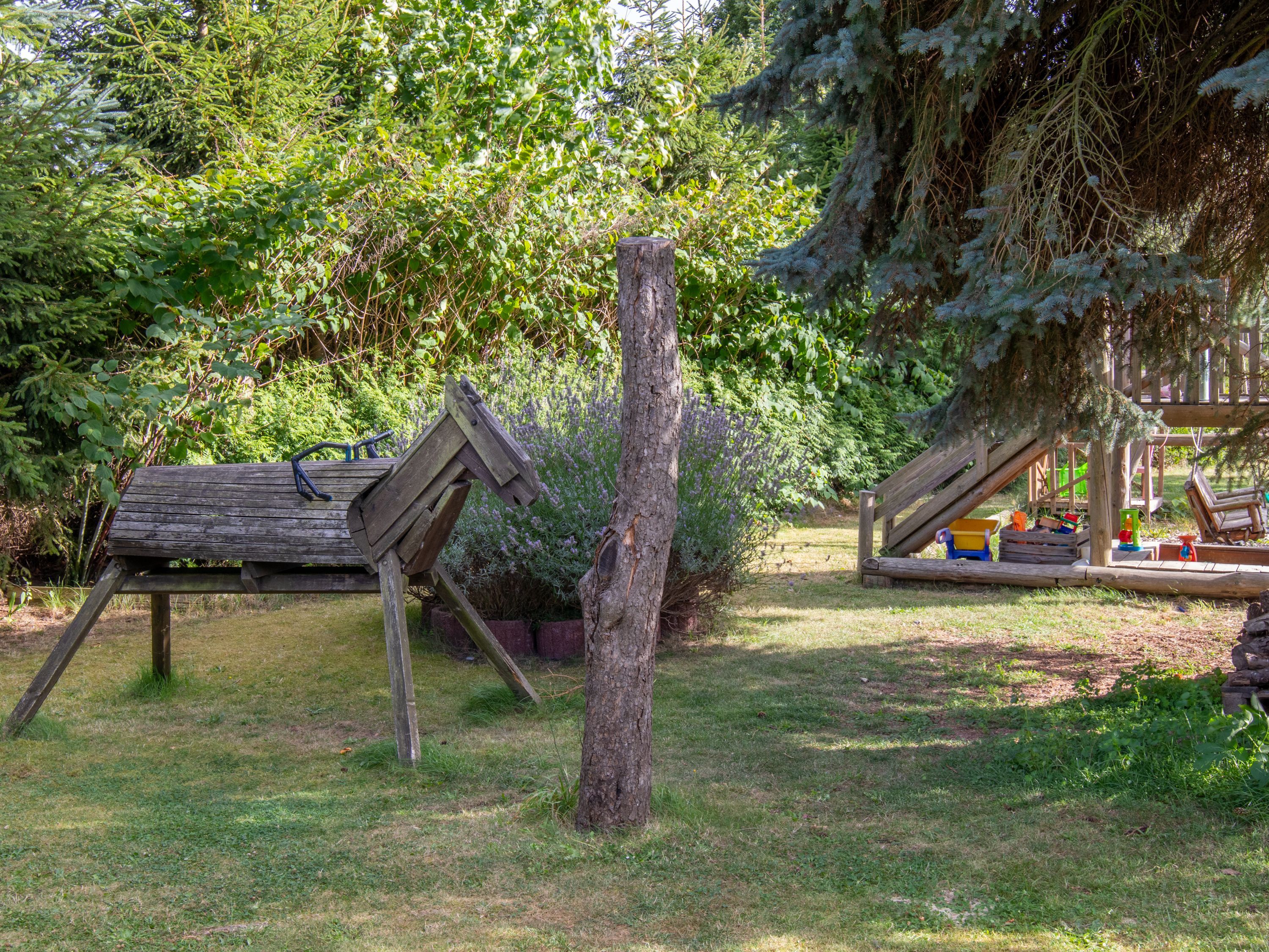 Weiterhin befinden sich im Garten Gartenstühle und Tisch, zwei Sonnenliegen, eine Grillmöglichkeit sowie ein Kinderspielplatz mit Trampolin.