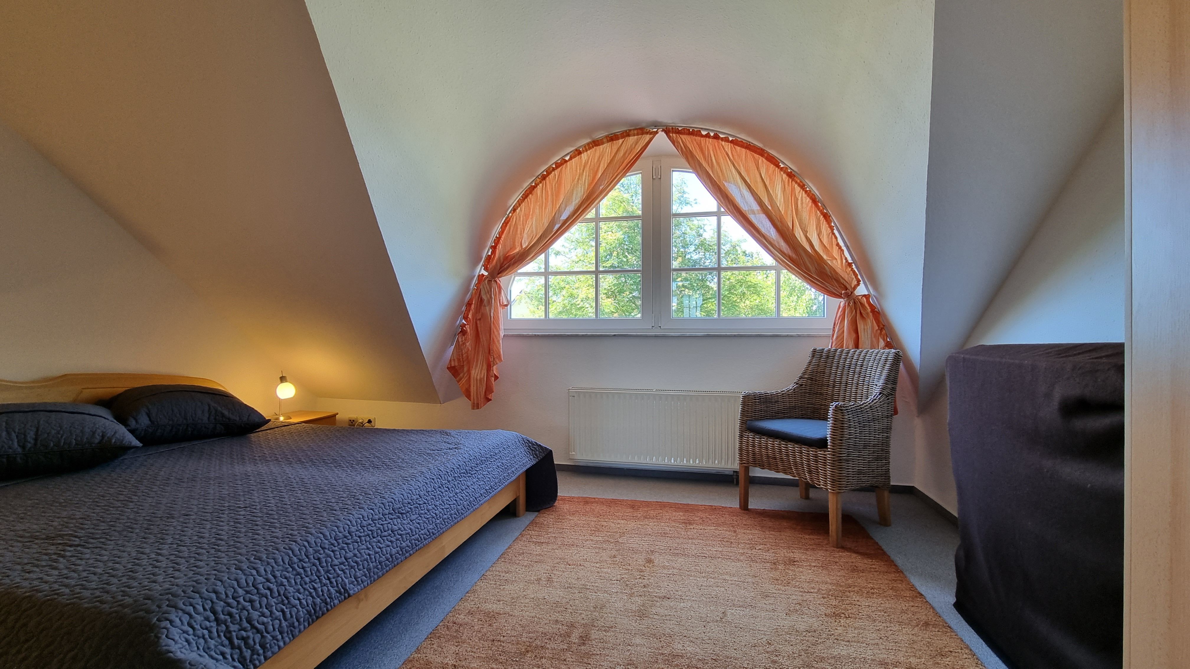 Wir bieten Ihnen hier eine 2-Zimmer-Ferienwohnung im Dachgeschoss für bis zu 4 Personen an.
