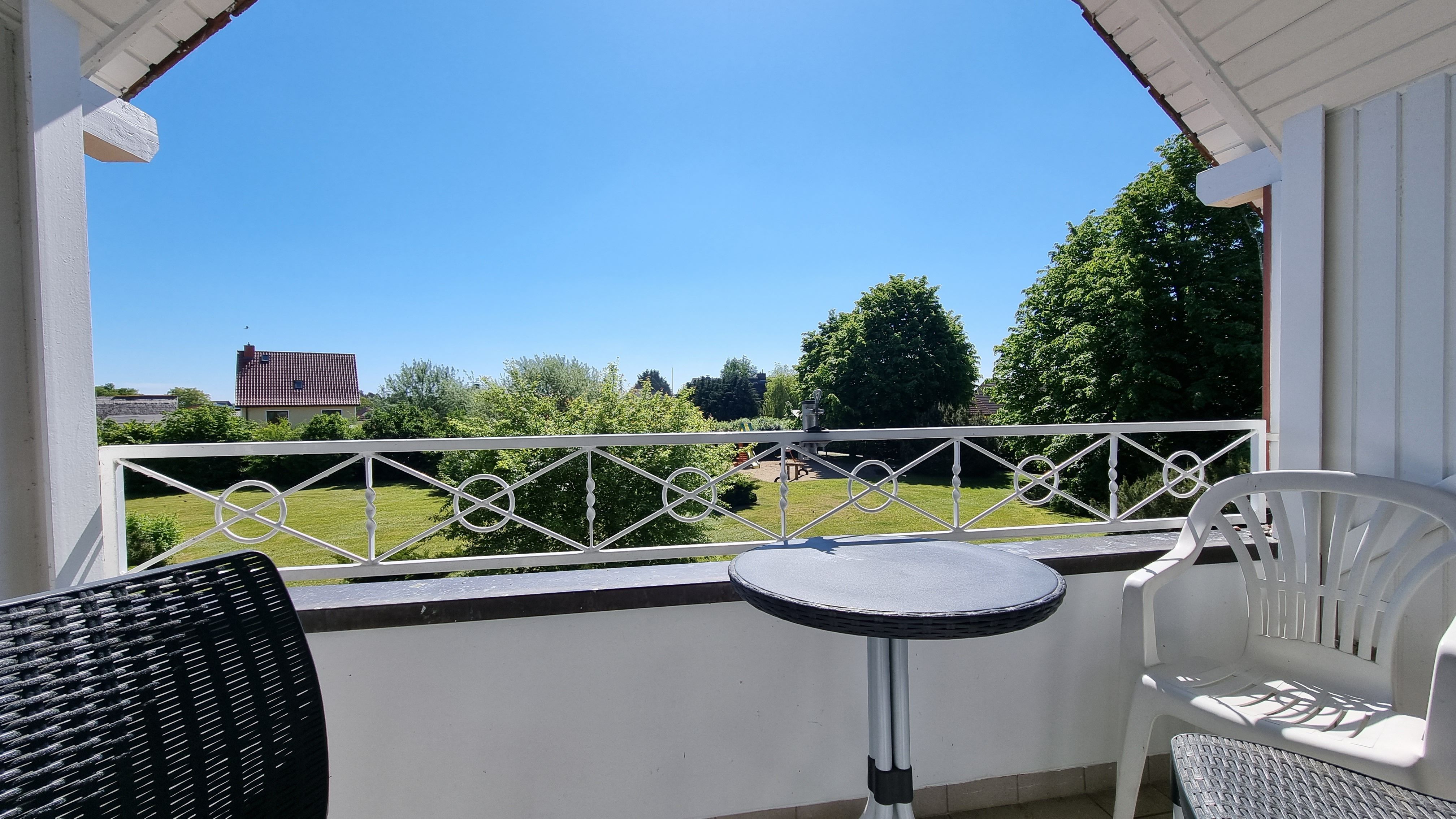 • Die Loggia ist nach Süd-Ost ausgerichtet und mit Balkonmöbeln ausgestattet.