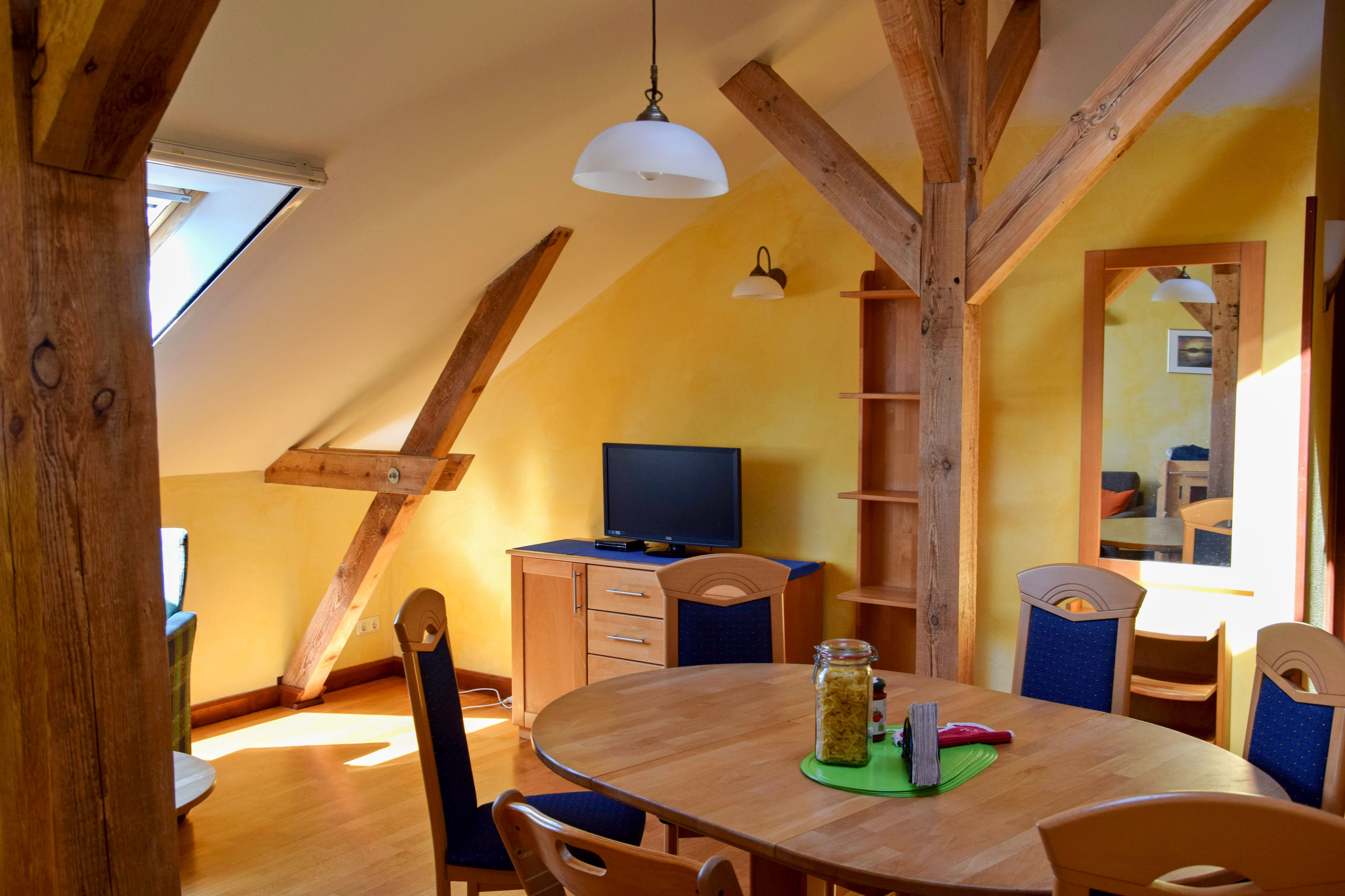 Ausstattung: Vollholzmöbel, Doppelbett 160X200 cm, Einzelbetten oder Doppelstock-Bett im extra Schlafzimmer, Sat-TV, bequemes Schlafsofa, Wasserkocher, Kaffeebereiter (FrenchPress).