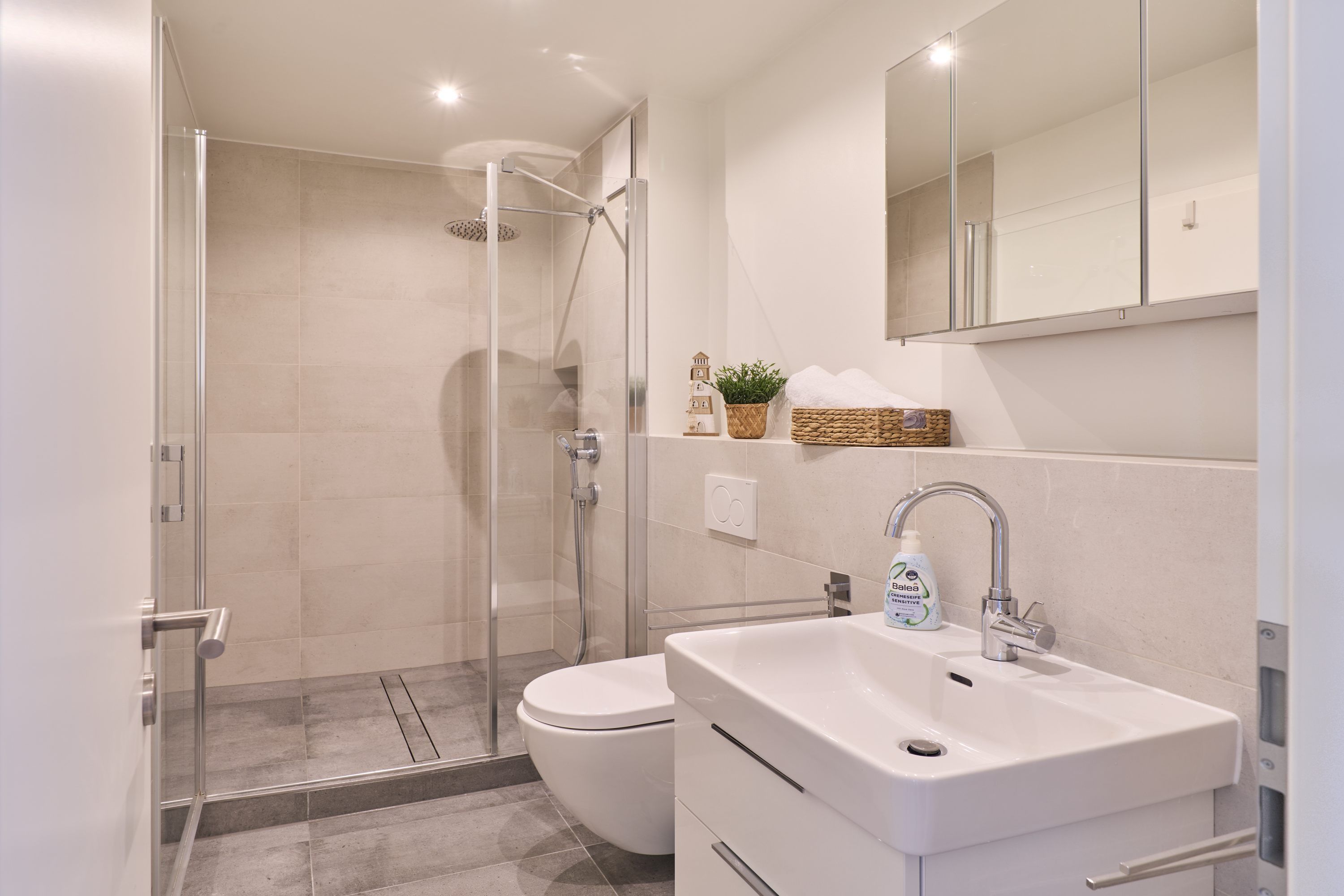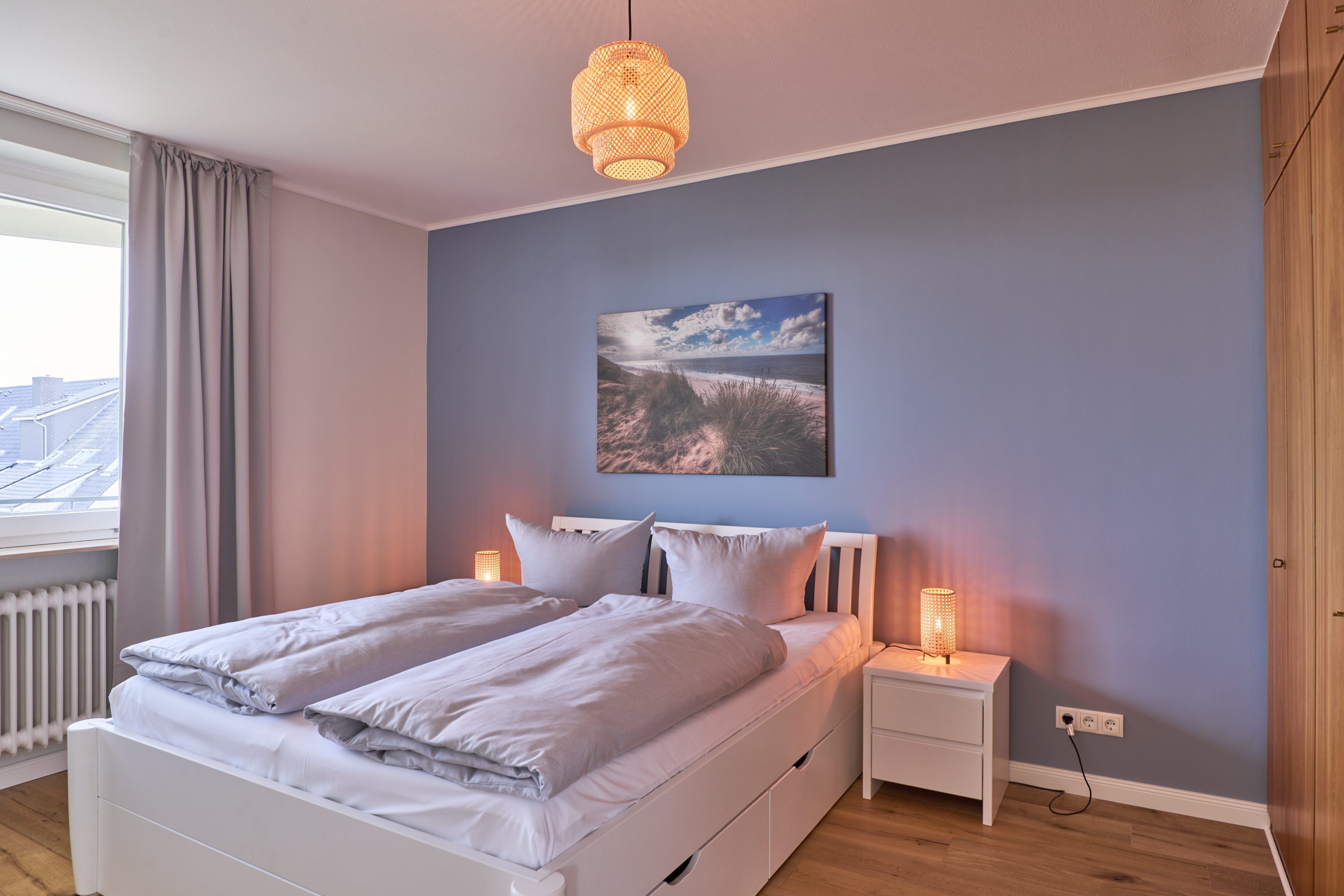 Im Schlafzimmer stehen Ihnen ein bequemes Doppelbett (1,60 x 2,00m) sowie ein geräumiger Schrank zur Verfügung. Zusätzlich steht Ihnen auch hier ein Flachbildfernseher zur Verfügung. Das Badezimmer verfügt über eine bodentiefe Dusche. Handtuchheizkörper. Das Duschbad ist vom Schlafzimmer aus sowie von dem Flur aus zu begehen.