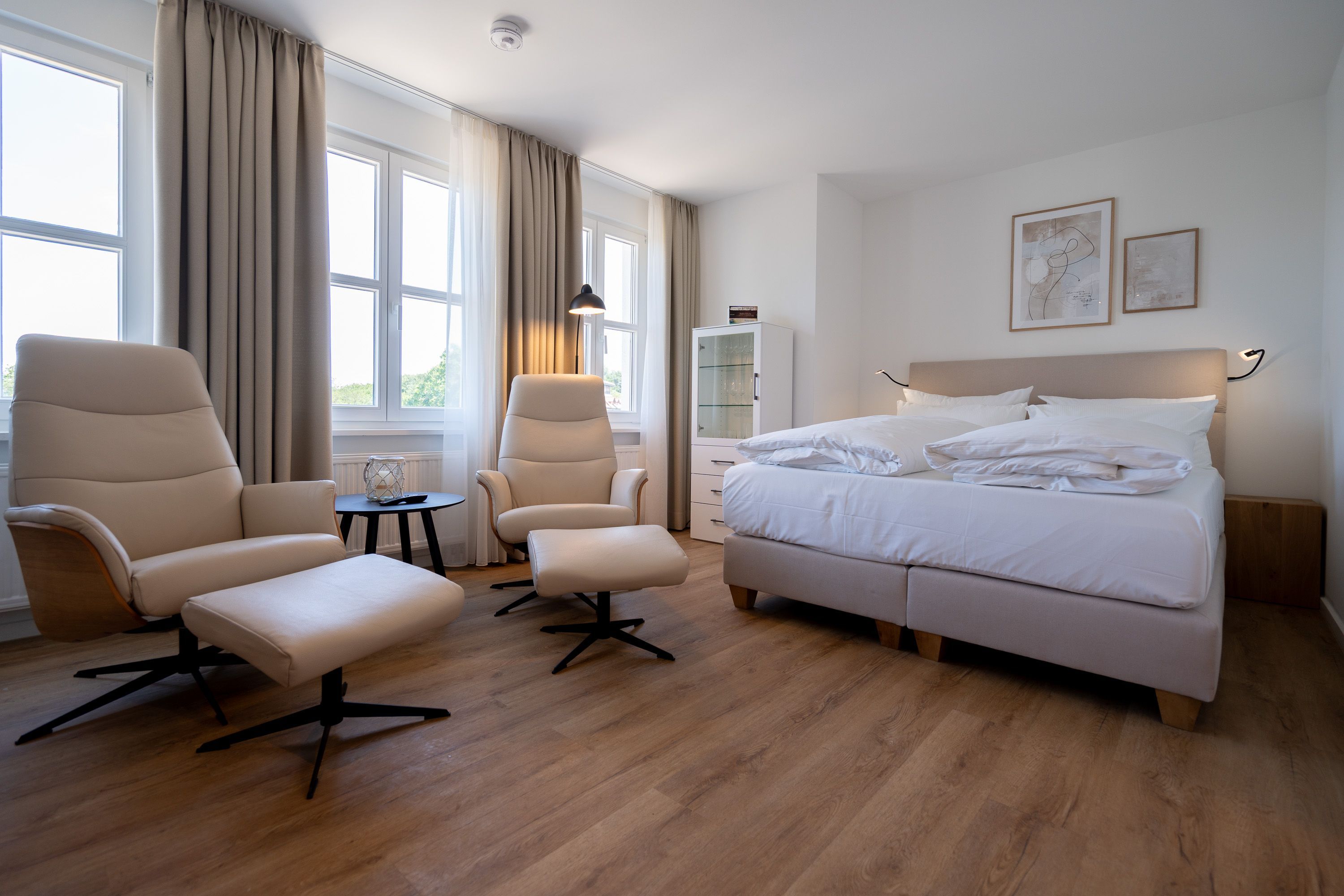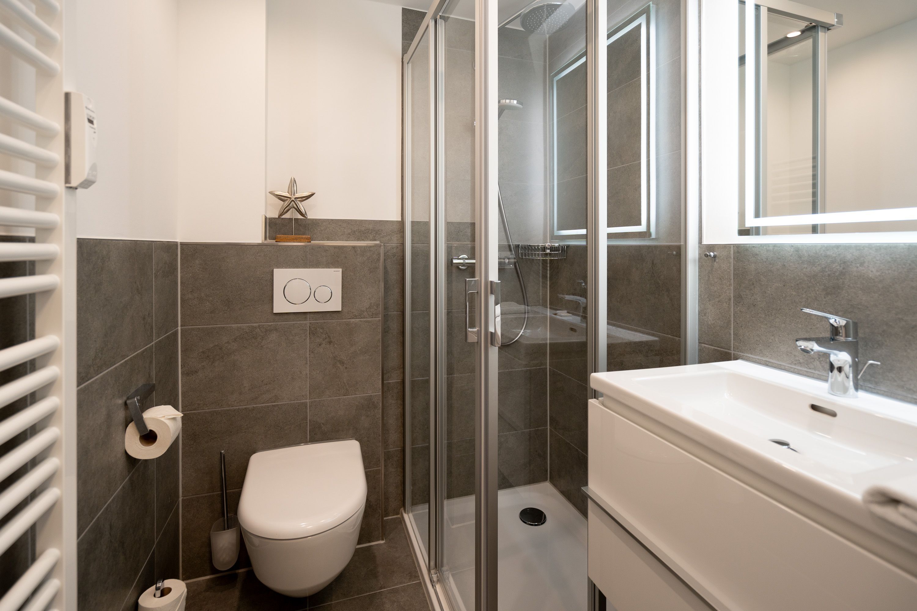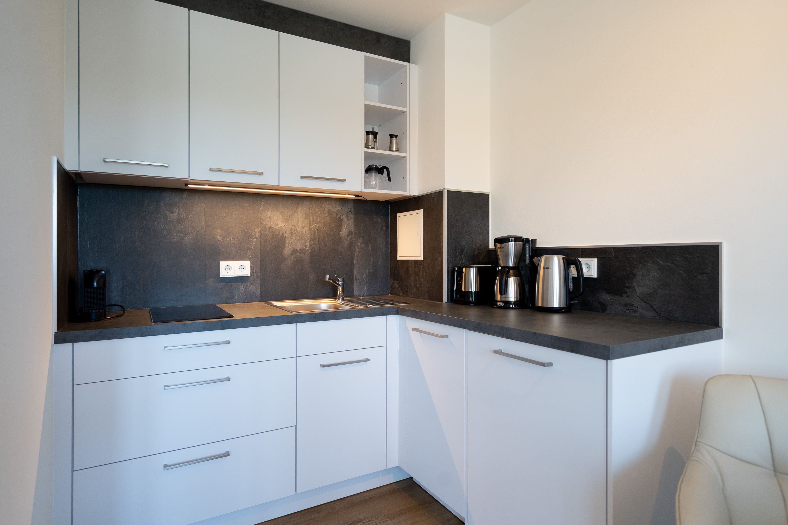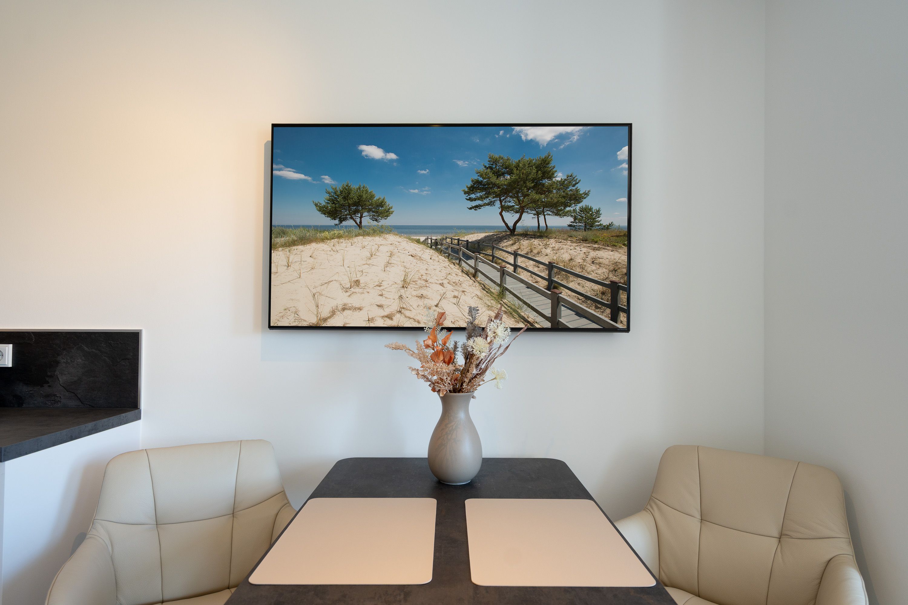 Kompakt, stilvoll, durchdacht 1-Raum-Appartement Nr. 5 für zwei in der 2. Etage.Dieses liebevoll eingerichtete 1-Raum-Appartement in der 2. Etage bietet auf 28?m² eine clevere Kombination aus Funktionalität und Wohlfühlambiente ideal für Paare oder Alleinreisende, die Wert auf Komfort legen. Der offene Wohnbereich ist hell und freundlich gestaltet. Die moderne Küchenzeile ist ausgestattet mit 2-Platten-Cerankochfeld, Spülmaschine, Kühlschrank mit Gefrierfach und Nespresso-Kapselmaschine ideal für den ersten Kaffee am Morgen oder das schnelle Abendessen. Der gemütliche Essplatz für zwei lädt zum Verweilen ein. Für entspannte Stunden stehen zwei komfortable Relaxsessel mit Hocker bereit, begleitet von einem 55-Zoll-Flat-TV falls das Meer mal Pause hat. Das hochwertige Boxspringdoppelbett (1,60?m x 2,00?m) sorgt für erholsamen Schlaf, während der Kleiderschrank ausreichend Stauraum für Ihre Urlaubsgarderobe bietet. Das kompakte Bad mit Dusche (0,85m x 0,70m), Waschtisch und WC ist gepflegt und funktional alles drin, alles dran. Ein fester PKW-Stellplatz (Nr.?5) befindet sich direkt vor dem Haus, kostenfreies WLAN ist selbstverständlich inklusive. Ein durchdachtes Refugium für alle, die es klar, gemütlich und komfortabel mögen willkommen in Ihrer kleinen Auszeit.
