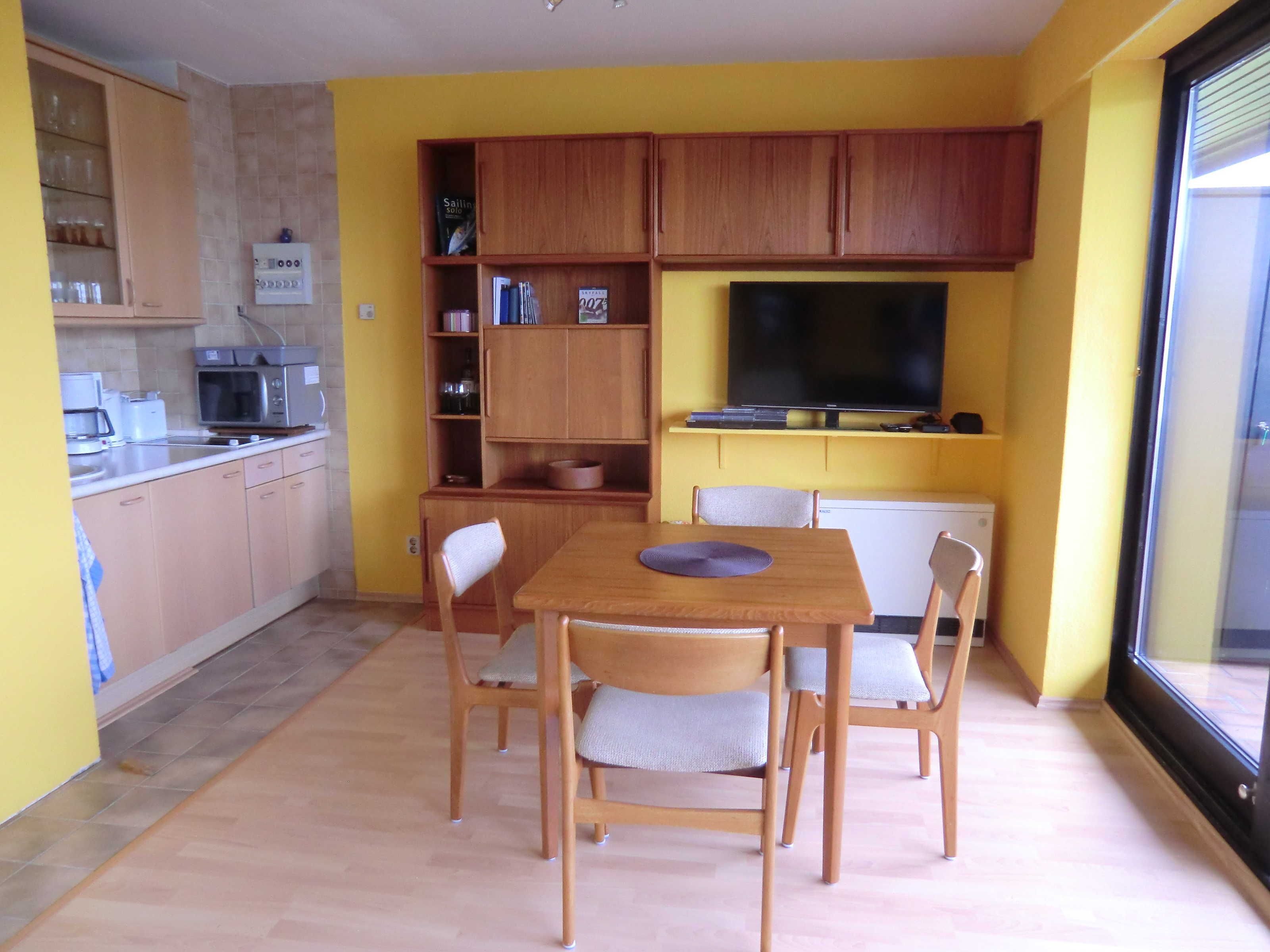 Die Ferienwohnung Koje befindet sich im 2. OG und hat ca. 46 m², aufgeteilt in: Wohnraum mit Doppelbett-Schlafcouch, 3D-HD-Flachbild-TV und 3D-HD-Blueray-USB Recorder, Elektro-Kaminofen, offene Küchenzeile mit Grill-Mikrowelle und Geschirrspüler, Schlafraum mit 2 Einzelbetten.