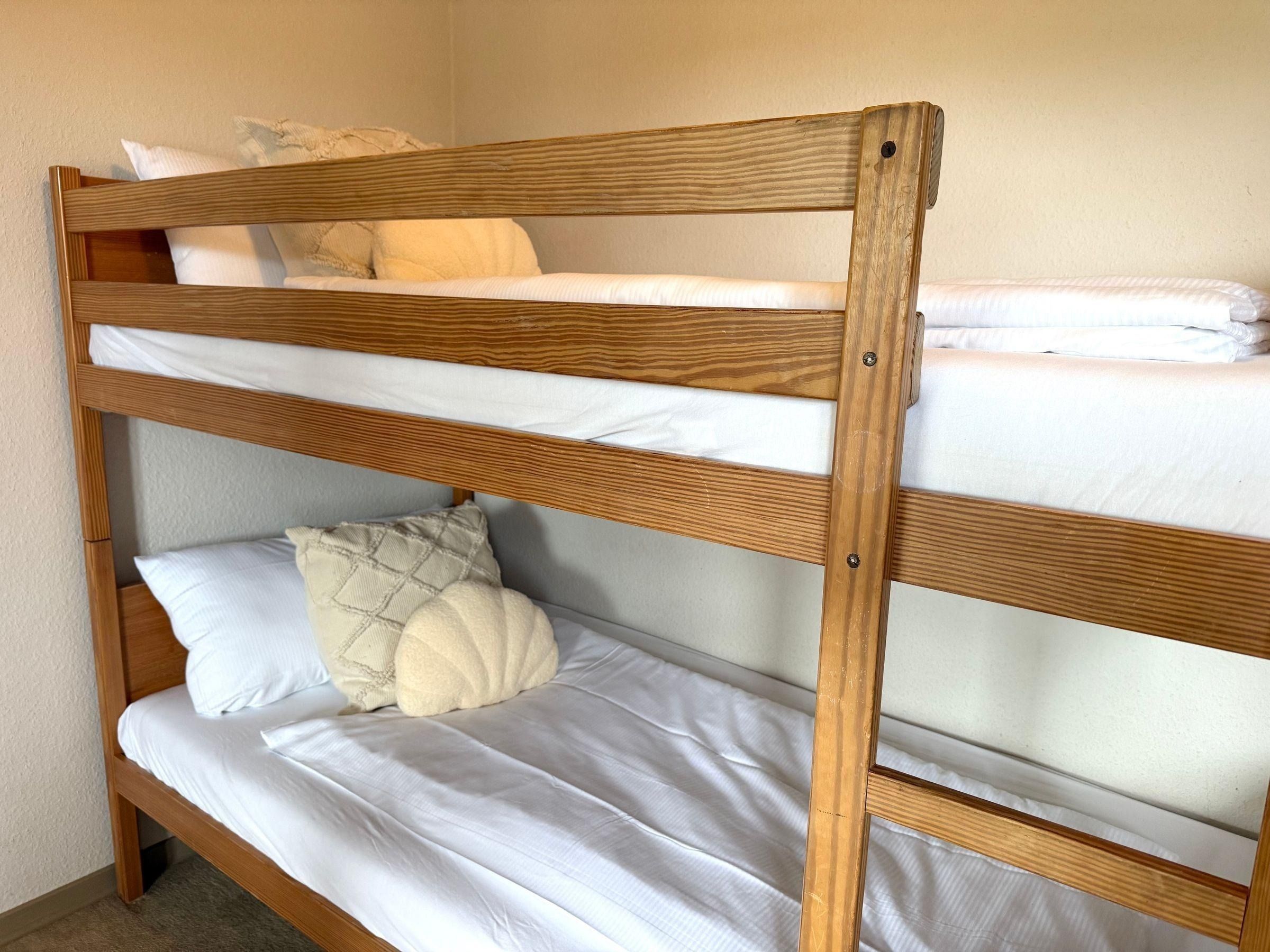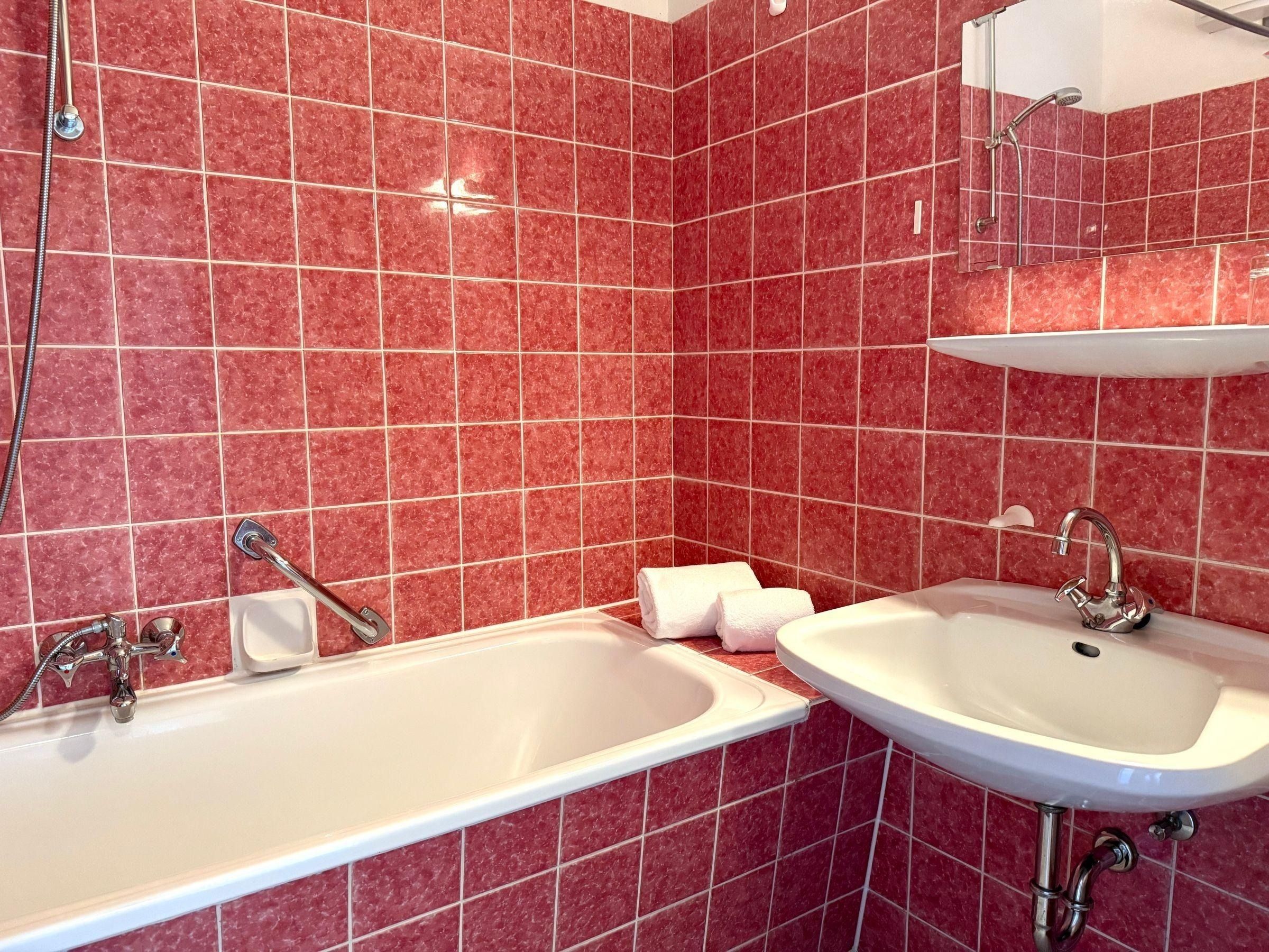 Die Ferienwohnung bietet eine moderne und komfortable Unterkunft für jeden Aufenthalt. Sie verfügt über ein Schlafzimmer mit einem Doppelbett sowie ein Wohnschlafzimmer mit zwei Einzelbetten, die flexibel genutzt werden können. Das Badezimmer ist mit einer Badewanne und einem großen Spiegel ausgestattet.