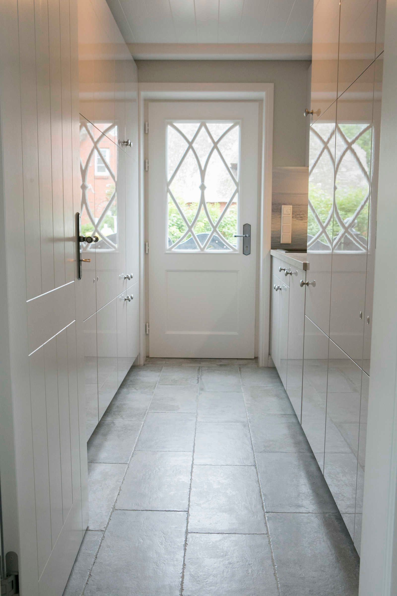 Der daneben befindliche Hauswirtschaftsraum bietet einen Waschtrockner sowie eine Spüle und viel Schrankplatz.