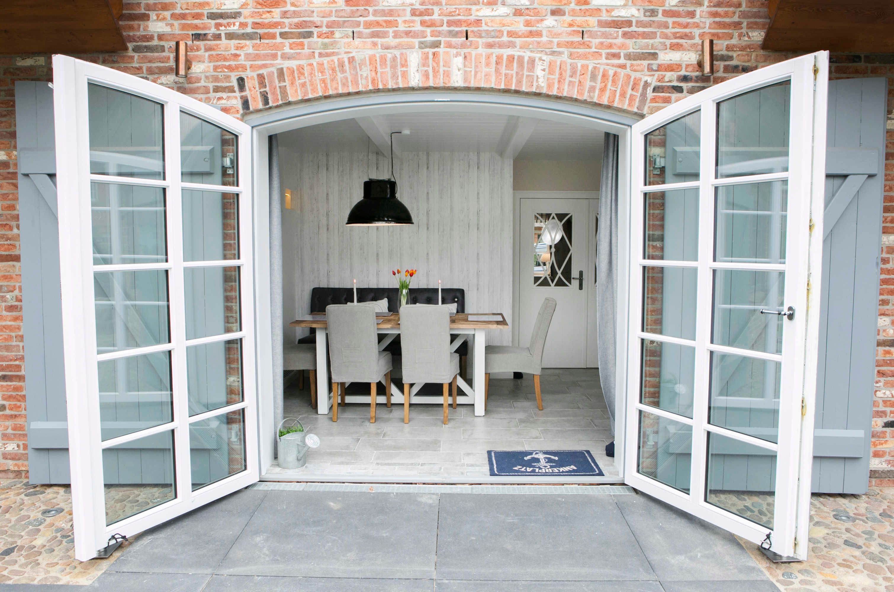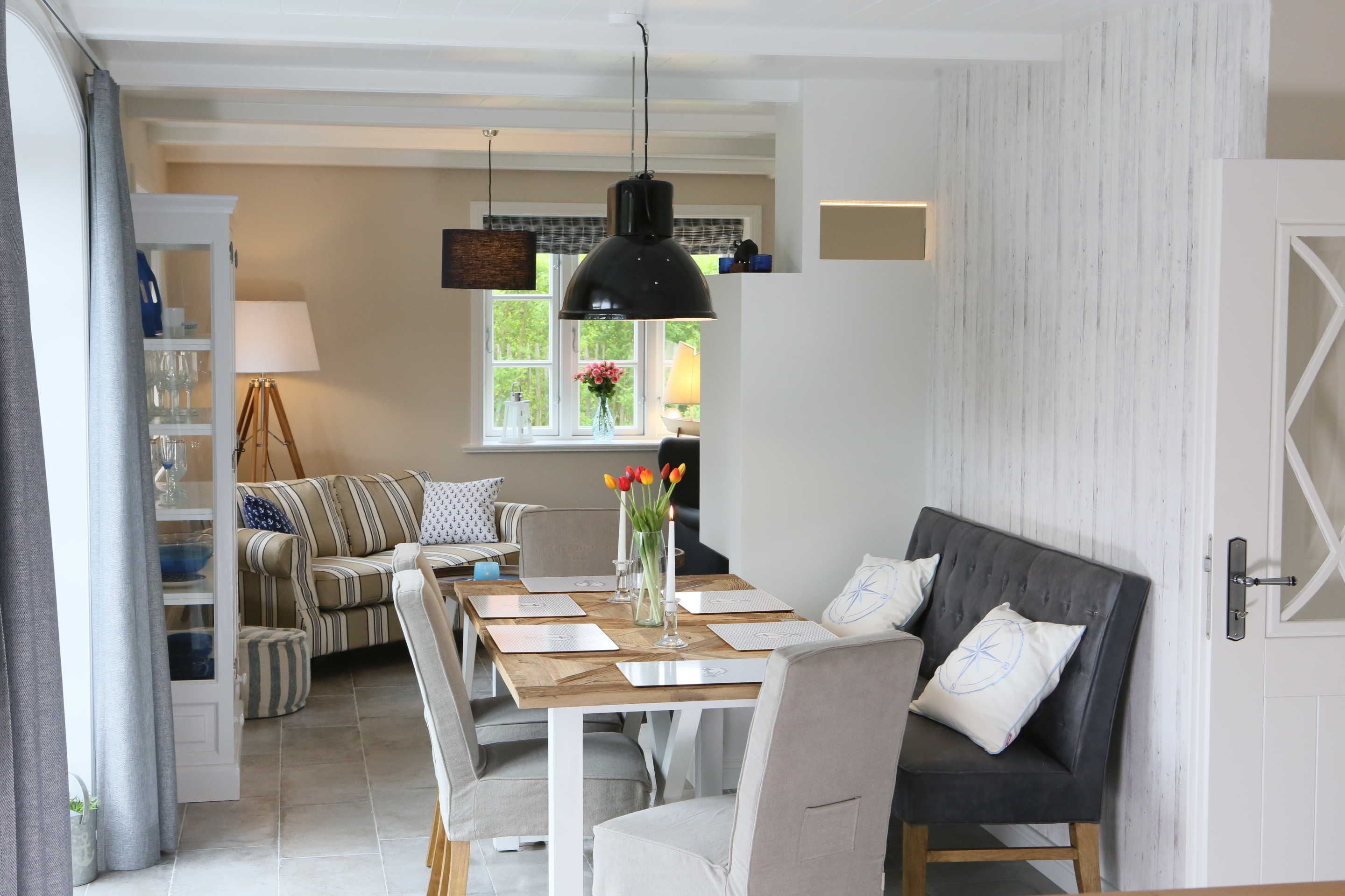 Ein rustikaler, bequemer Essbereich mit direktem Zugang zur Terrasse, ist der zentrale Punkt des Hauses.