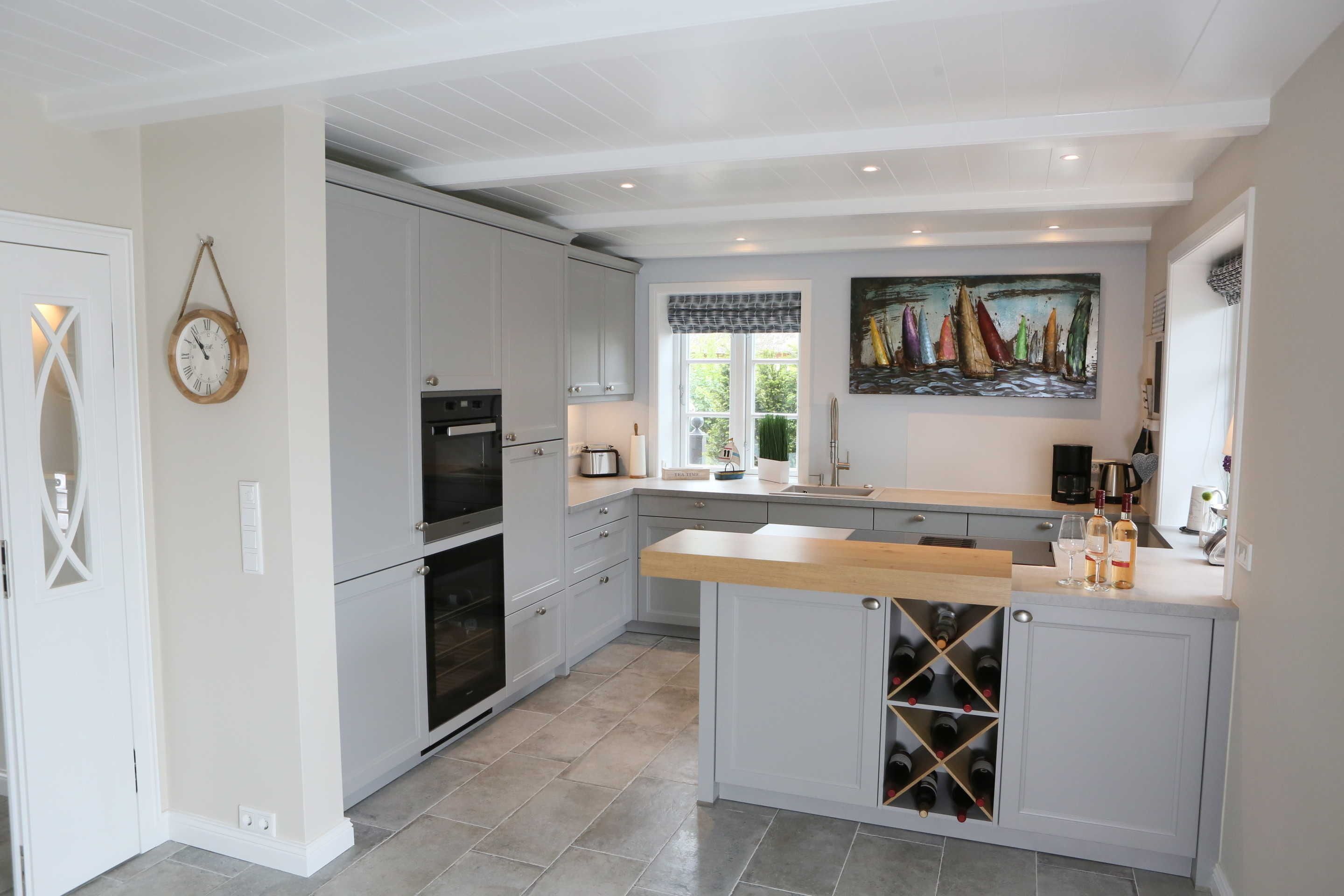 Küche, Wohn- und Essbereich gehen großzügig ineinander über. Die hochwertige Kücheneinrichtung lädt geradezu zum Kochen ein. Vom Kühl- und Gefrierschrank, einem Wein-/ Getränkekühler über den bequem zu bestückenden Geschirrspüler und die innovative Kochinsel mit integriertem Dunstabzug und großen Induktionsfeldern, ist alles vorhanden.
