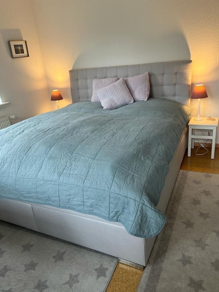 Es steht ein großes Boxspringbett (1,8 m x 2 m) und ein Einzelbett 0,80 m x 2 m zur Verfügung.