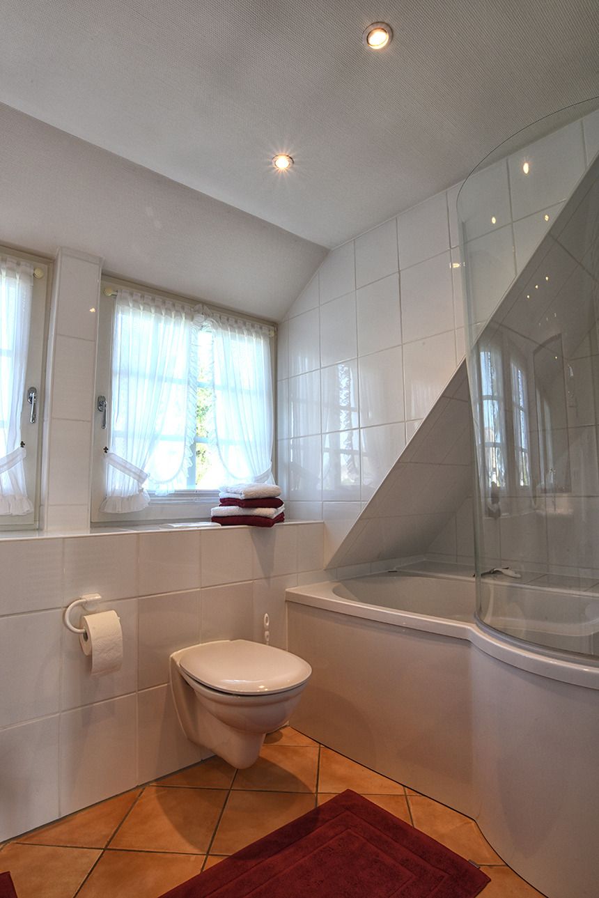 Im oberen Bereich finden Sie zwei Schlafräume mit je einem Doppelbett. Außerdem befindet sich auf dieser Ebene ein Dusch-/Wannenbad. Im Hauptschlafzimmer befindet sich ein zweiter Fernseher.