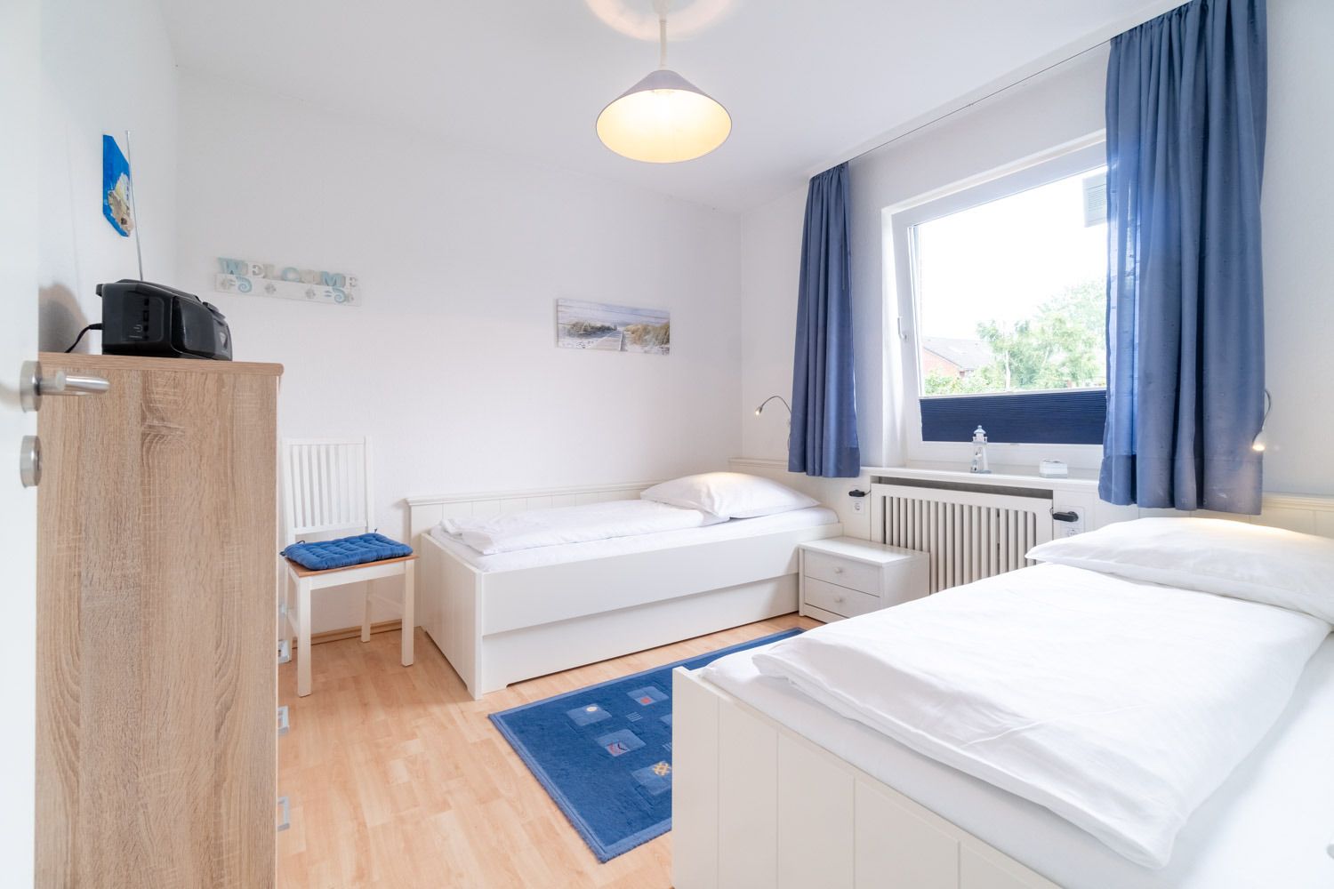 Im großen Schlafzimmer steht ein Doppelbett und in dem zweiten Schlafzimmer stehen zwei Einzelbetten.