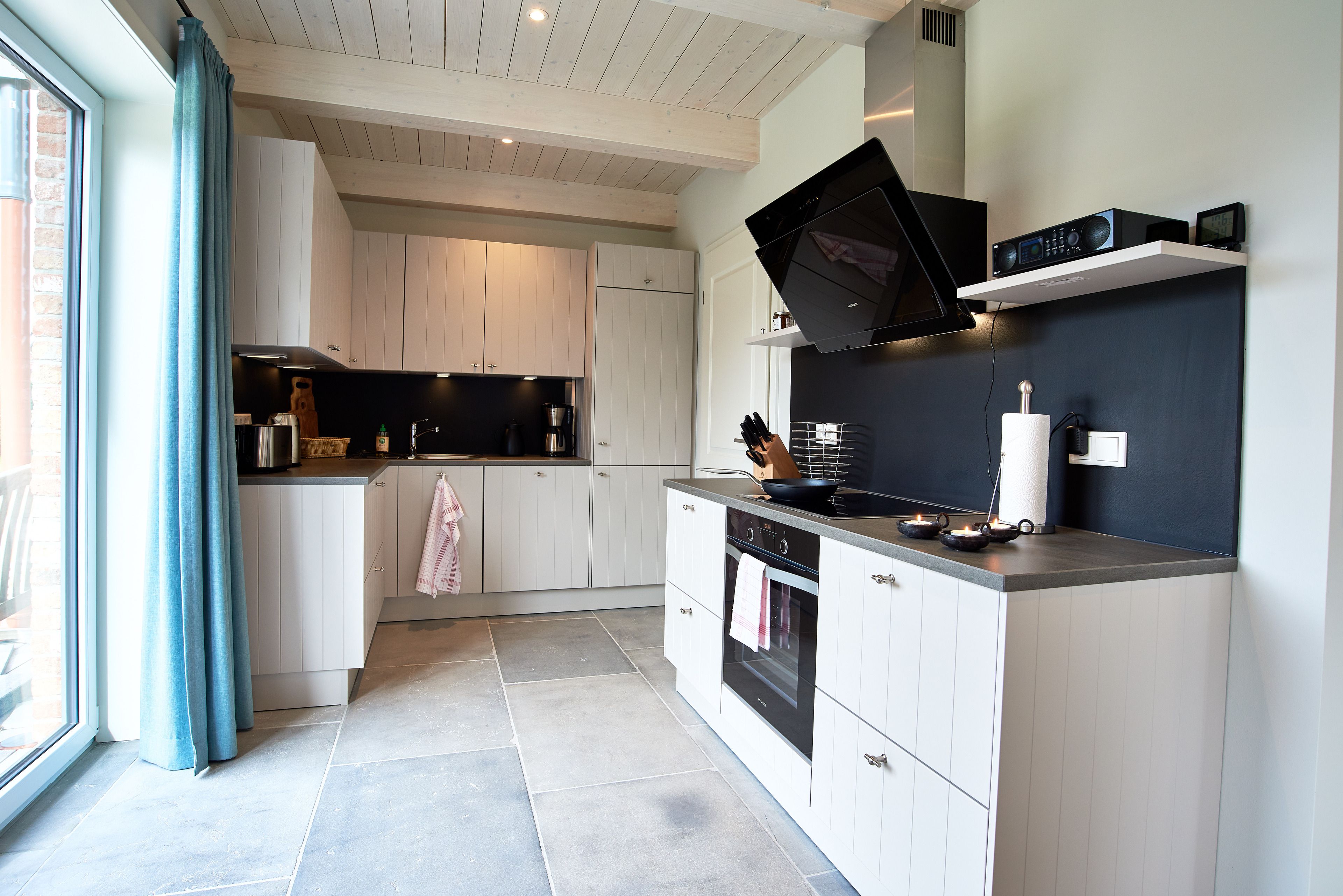 Die DHH ist ca. 100 qm groß und bietet 3 Schlafzimmer für insgesamt 5 Personen. Zwei helle freundliche Badezimmer mit Duschbereich sorgen dafür, dass es am Morgen nicht zu Wartezeiten kommt. Im gemütlich eingerichteten Wohn- Esszimmer befindet sich die modern eingerichtete Küche in der Sie alles finden, was für einen gelungenen Urlaub nötig ist. Ein Mylinkachelofen, der mit Bioethanol befeuert wird, gehört ebenfalls zur Ausstattung des Wohnzimmers. Von der Küche aus haben Sie Zugang zur Terrasse. Zur Küche gehört ein Hauswirtschaftsraum mit Waschmaschine und Trockner. Im 1. Obergeschoss befinden sich alle drei Schlafzimmer (1 x Doppelbett, 2 x Einzelbett und 1 x Einzelbett) sowie das große Badezimmer. Das zweite Badezimmer befindet sich im Erdgeschoss. Im Dachgeschoss befindet sich eine Sauna für die kalten Tage. Dieses Haus ist somit gerade für große Familien gut geeignet. Ein PKW-Stellplatz befindet sich direkt am Haus.