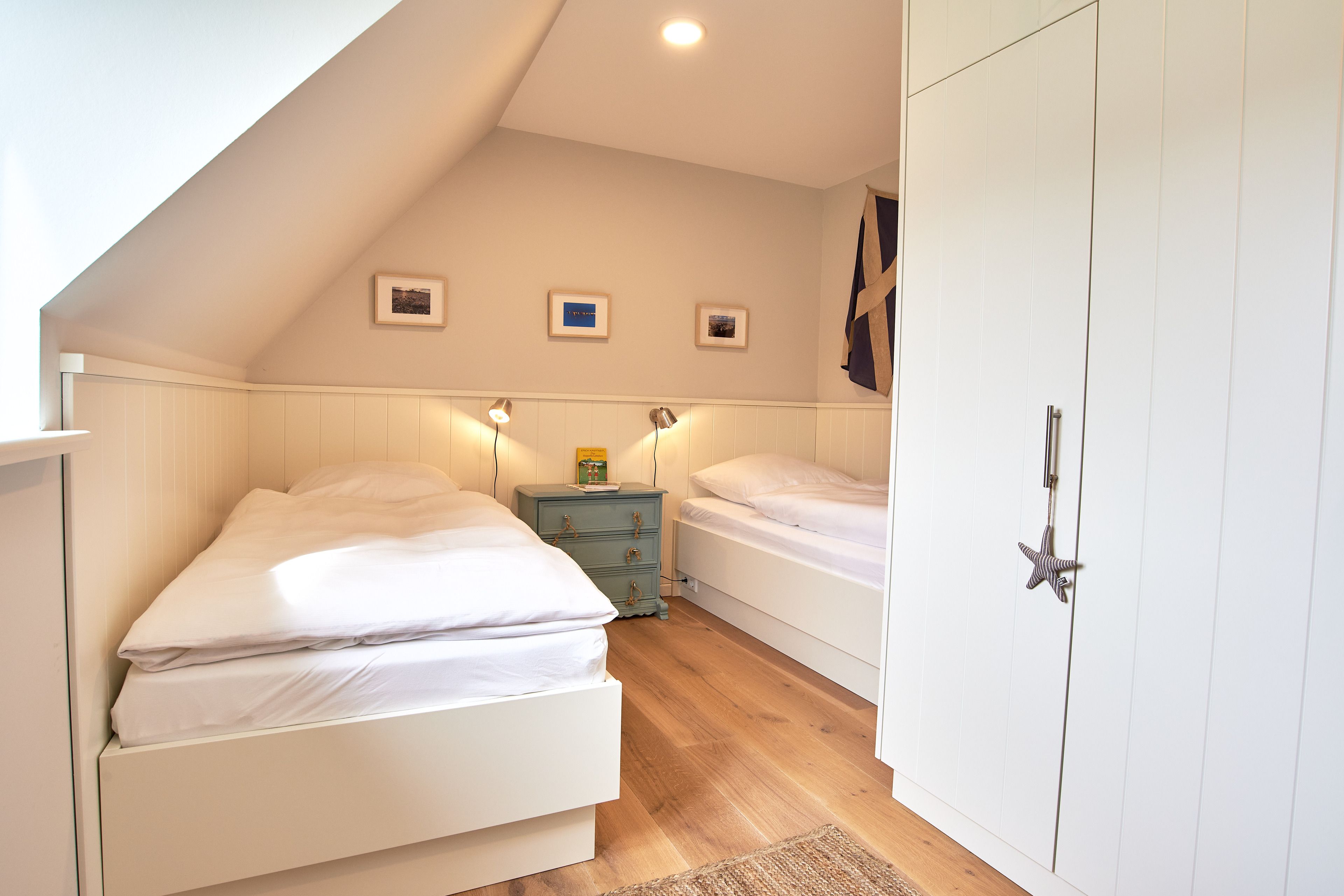 Sie wohnen zentral direkt im Herzen von Wyk, trotzdem ruhig gelegen. In wenigen Gehminuten gelangen Sie entweder zur Promenade mit den Restaurants, Cafés und Geschäften und dem weitläufigen, kinderfreundlichen Strand oder in das Wäldchen Löwenhöhle, in dem sich der größte Spielplatz der Insel befindet.