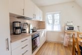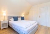 Die Wohnung ist gemütlich eingerichtet. Im Wohnzimmer steht ein Flat-TV zur Verfügung, falls man mal nicht zum Strand möchte. Das Badezimmer ist mit einer Dusche ausgestattet und verfügt über einen Waschtrockner. Die Küche bietet genügend Platz für 4 Personen und hat für Kleinkinder einen Kinderhochstuhl. In beiden Schlafzimmern befinden sich Doppelbetten, in dem großen Schlafzimmer steht ein 180 x 200 cm Bett und in dem kleinen Schlafzimmer ein 140 x 200 cm Bett. Im kleinen Schlafzimmer steht außerdem ein Schminktisch.