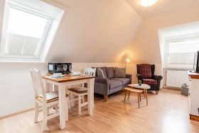 Sie wohnen direkt in Wyk und trotzdem ruhig gelegen. In wenigen Gehminuten gelangen Sie entweder zur Promenade mit den Restaurants, Cafés und Geschäften und dem weitläufigen, kinderfreundlichen Strand oder in das Wäldchen Löwenhöhle, in dem sich der größte Spielplatz der Insel befindet.