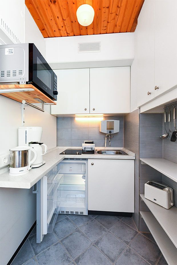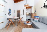 Wohnraum mit integrierter Küche; angegliederter, räumlich abgetrennter Schlafraum