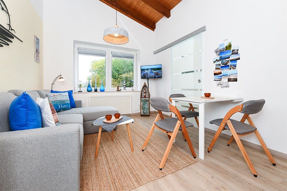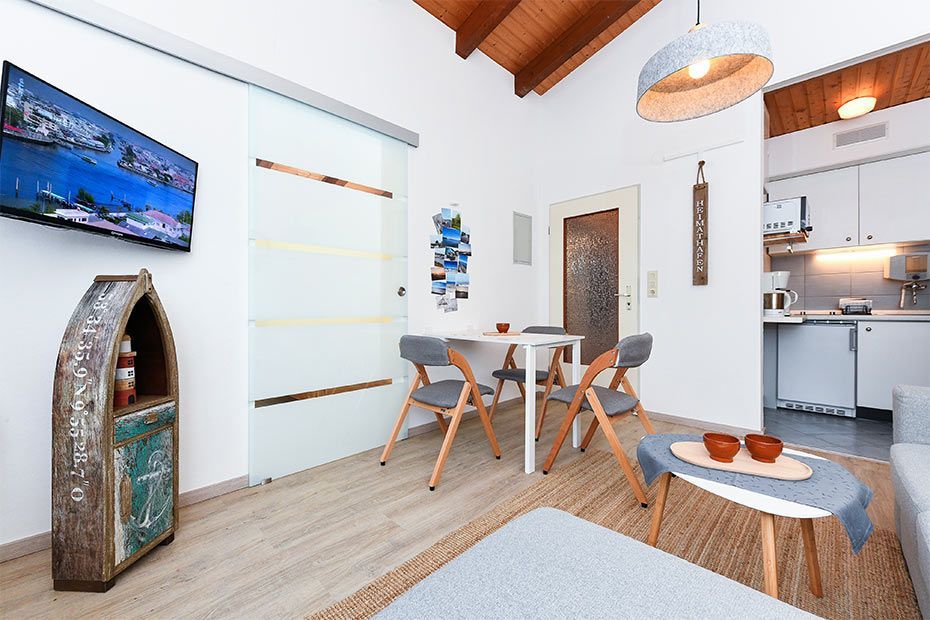 Die Ferienwohnung Happynest ist gemütlich und komfortabel eingerichtet und ausgestattet und verfügt über einen Balkon, einen Wohnraum mit integrierter Küche, ein Schlafzimmer und ein Badezimmer mit Dusche, Waschtisch und WC. Die Wohnung ist ca. 35 Quadratmeter groß, sehr preiswert und ideal für Paare und auch für Singles geeignet.