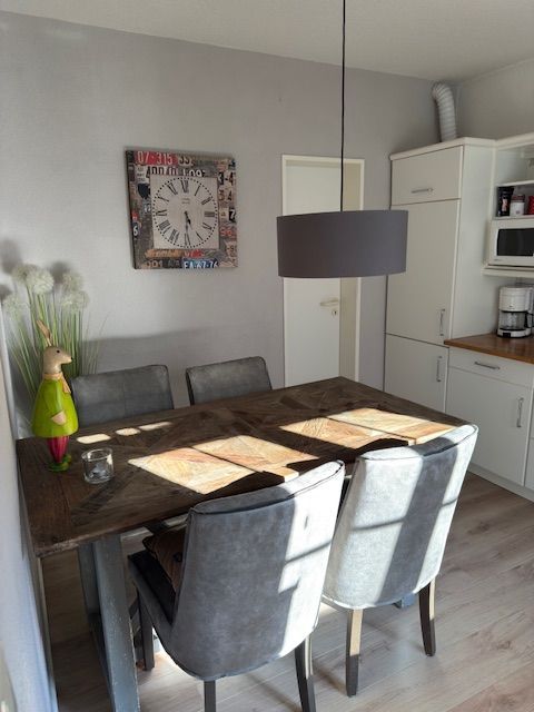 Die helle, liebevoll gestaltete Wohnung bietet ein gemütliches Wohnzimmer, eine voll ausgestattete Küche, zwei komfortable Schlafzimmer und ein modernes Badezimmer. Im eigenen Garten genießen Sie entspannte Stunden an der frischen Nordseeluft perfekt nach einem Spaziergang am Meer oder durch das Naturschutzgebiet Ellenbogen.