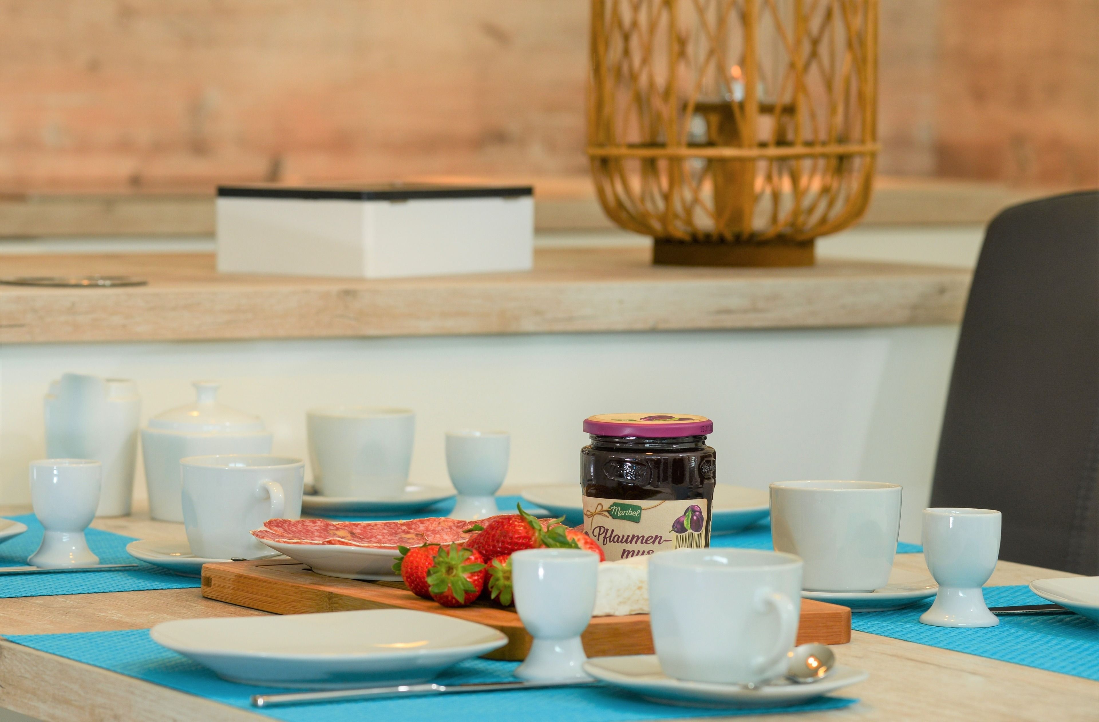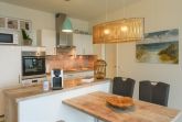 Der großzügige Essplatz rundet den ersten Raum der Ferienwohnung stimmig ab.